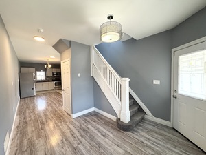 Welcome to 256 Oak St Unit B, a spacious and bright 2-bedroom, 1-bathroom rear unit located in a family-friendly neighbourhood in Downtown West Windsor. This one-floor unit, accessible from the side of the home, features a large living room with plenty of natural light and an open-concept kitchen equipped with a stainless steel fridge, stove, double sinks, and ample cabinet space. The kitchen also boasts a mirrored pantry door with added shelves for extra storage.