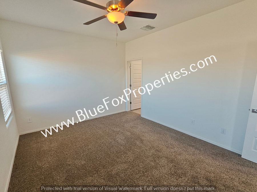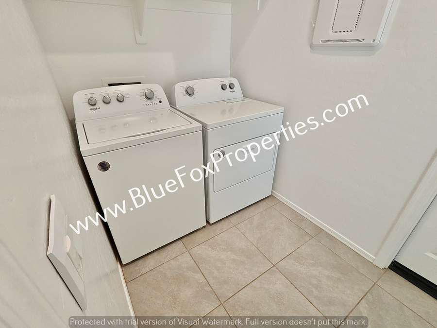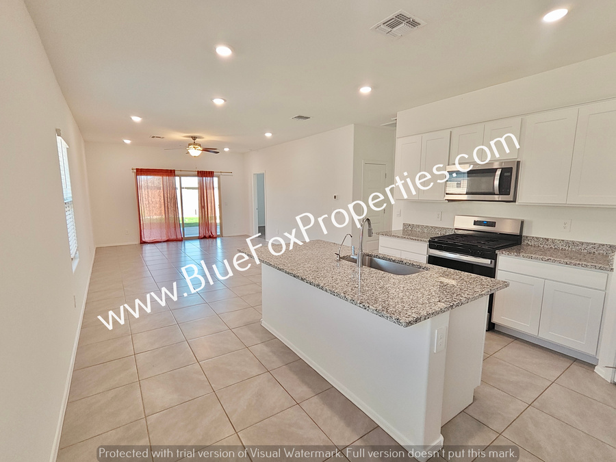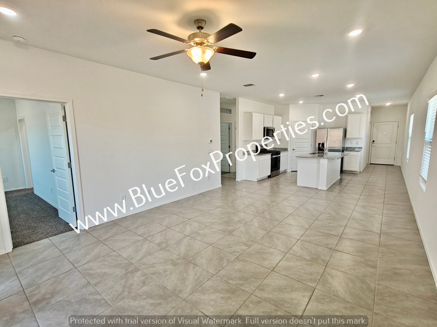 This stunning one-story, 3-bedroom, 2-bathroom home offers a spacious and bright living environment designed for comfort. The open kitchen serves as the heart of the home, fully equipped with stainless steel appliances, a pantry, and a functional island perfect for meal preparation. The home features tile flooring throughout the main living areas and cozy carpeting in the bedrooms. For added convenience, the property includes a dedicated laundry room complete with a washer and dryer. Outside, you can enjoy peace and quiet on the private covered backyard patio. The home also features a two-car garage.