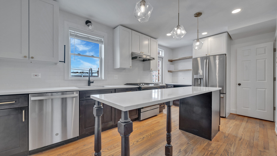 Renovated kitchen; stainless steel appliances; kitchen island; zoned mini split A/C; radiant heat; large unfinished basement; tandem parking for two cars; private outdoor space