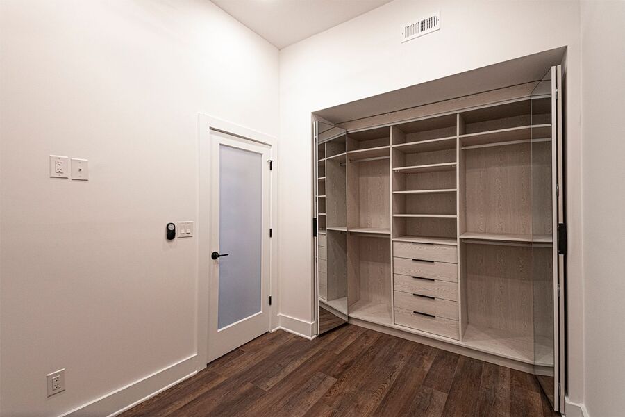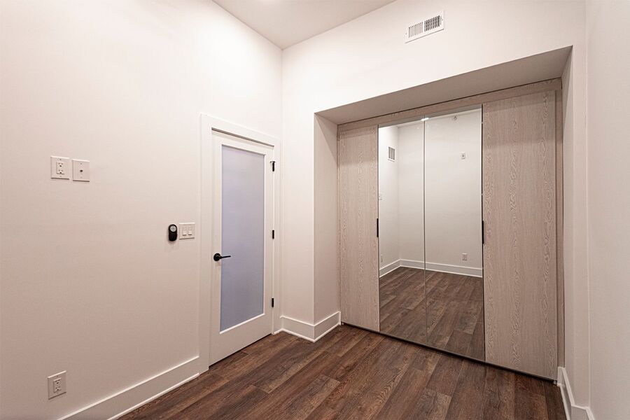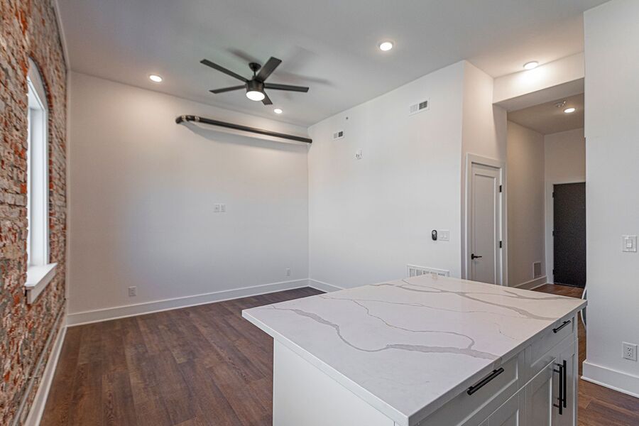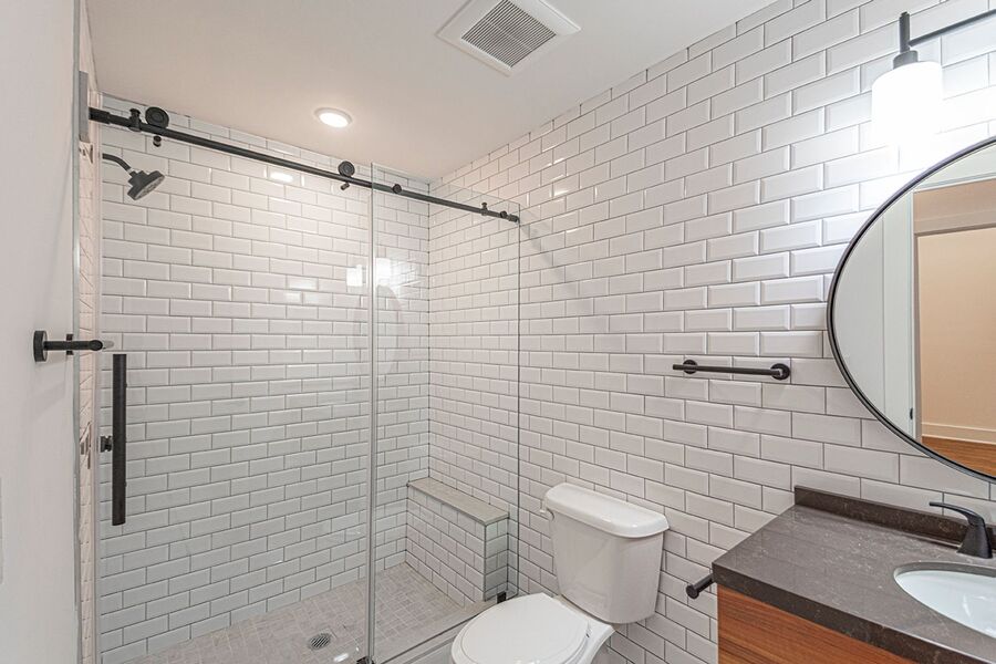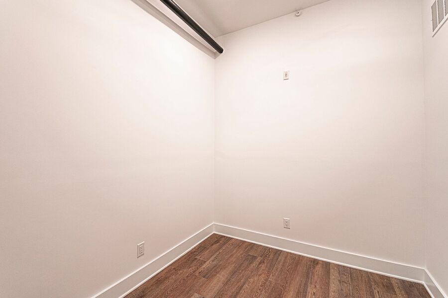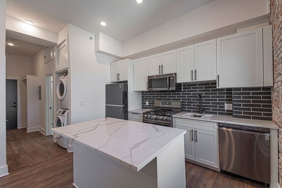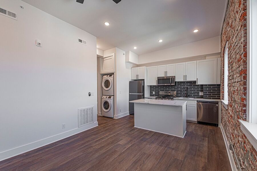 You are going to fall in love with this stunning 1 bedroom, 1 bathroom apartment that includes a beautiful marriage of industrial and modern luxury: from the hardwood floors, recessed lighting, central air/heat, and ceiling fans, to the impeccably restored exposed brick, white walls and contrasting black finishes throughout. As you enter the unit, you'll find the bathroom with a gorgeous round mirror, natural wood vanity with granite top, and white subway tile throughout including the large shower and stackable washer/dryer. Across the hall and through the frosted glass door is the bedroom with soaring high ceilings and closet with a full length mirror and custom organizer mixed with closet rods, open shelving and drawers. The living open floor plan living room features the ultra modern kitchen that's complete with quartz counter top, breakfast bar, textured black subway tile back splash, white cabinets with sleek black hardware, garbage disposal and black stainless steel dishwasher, microwave, refrigerator and 5 burner gas range with removable cast iron griddle.