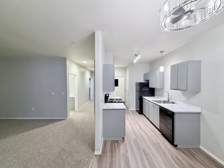 Unit #107B has been freshly updated and is ready to impress! This bright two-bedroom home features brand-new LVP flooring and a beautifully refreshed kitchen with new sleek, black appliances, updated countertops and cabinetry, and a modern light fixture that flows seamlessly into the dining area.