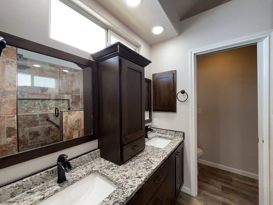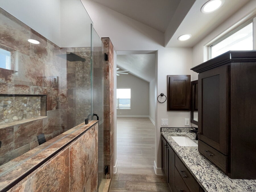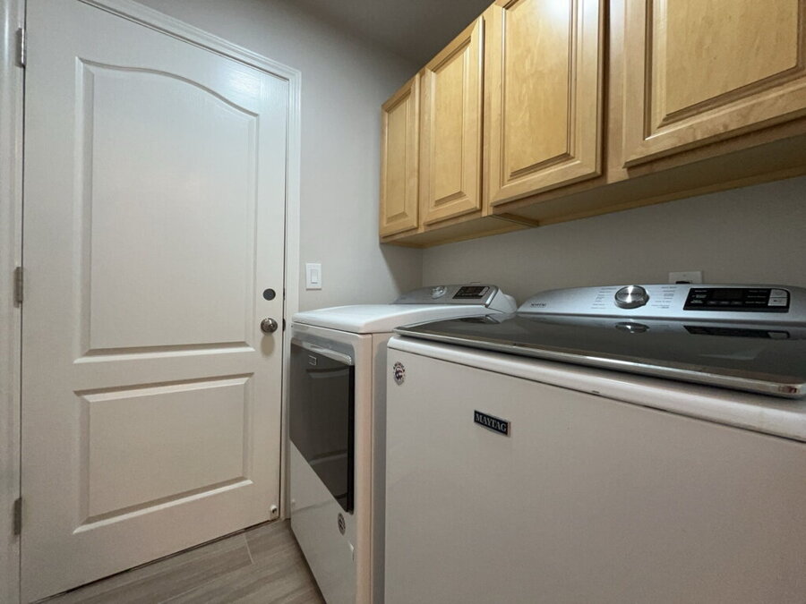 The primary suite offers a peaceful retreat, complete with a walk-in closet, double vanity and a spacious walk-in shower. A separate laundry room includes both a washer and dryer for added convenience.