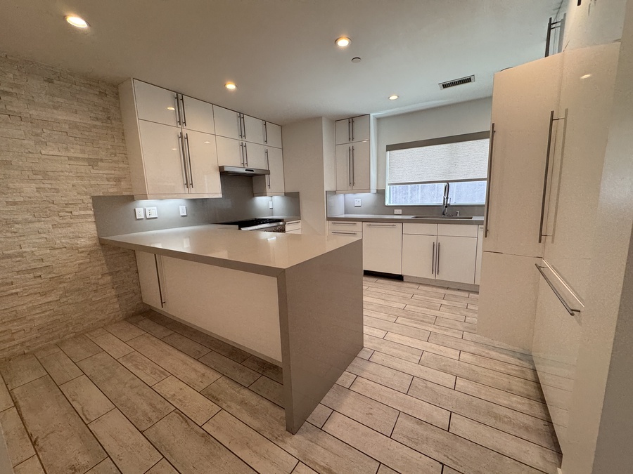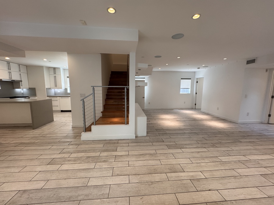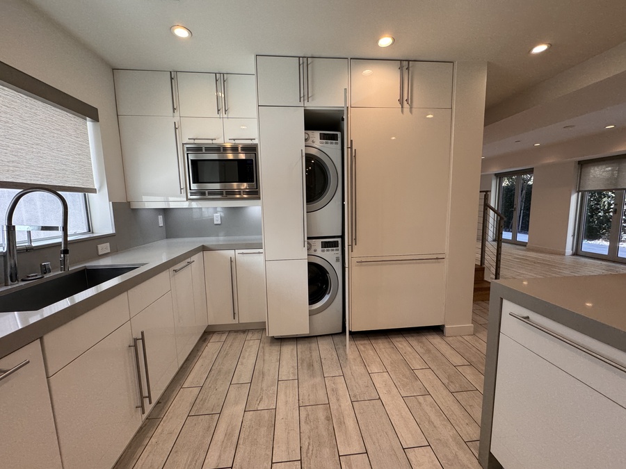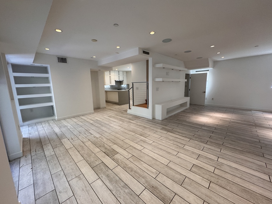 Extra large kitchen that opens to the Living area with built-ins, Designer Bathrooms.