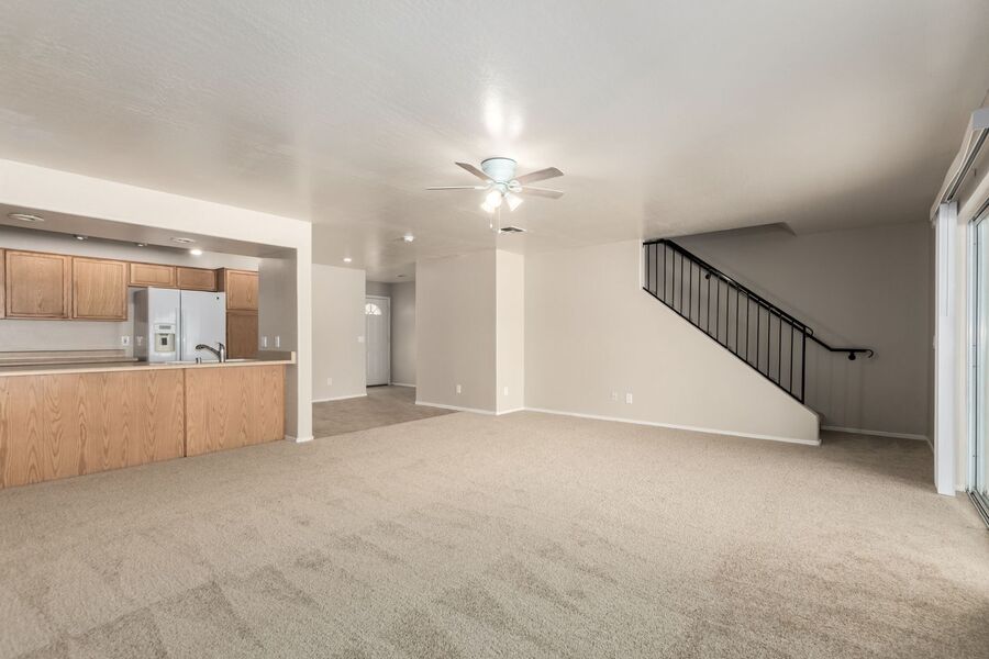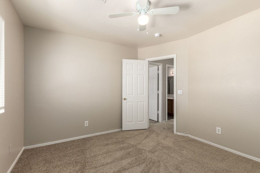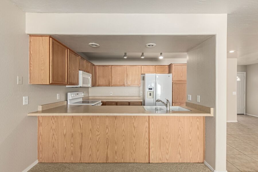 Tile flooring in main living areas, carpet in bedrooms for added comfort