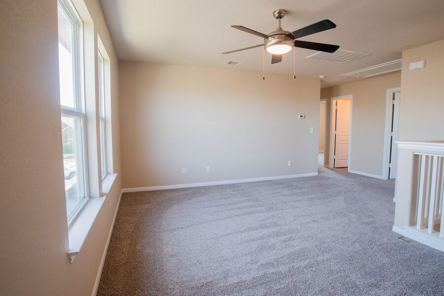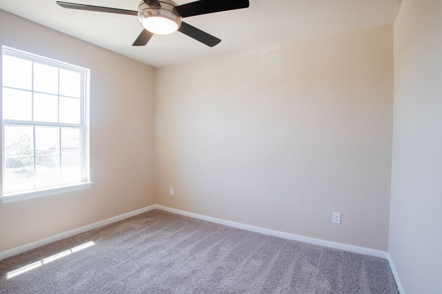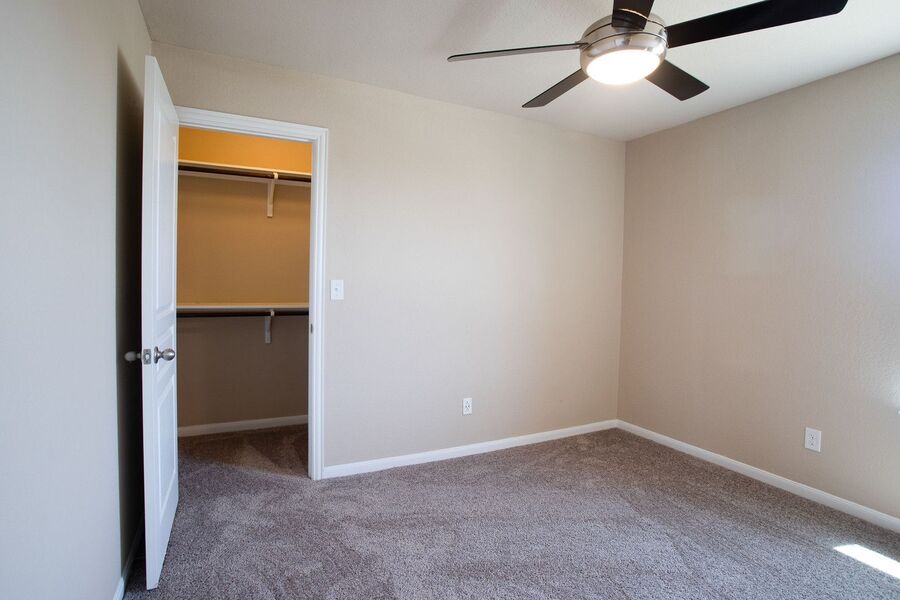 All bedrooms offer soft carpet flooring and ceiling fans for comfort, while the main bedroom includes a large walk-in closet providing plenty of storage space. The layout offers generous living areas that create a warm and welcoming atmosphere throughout the home.