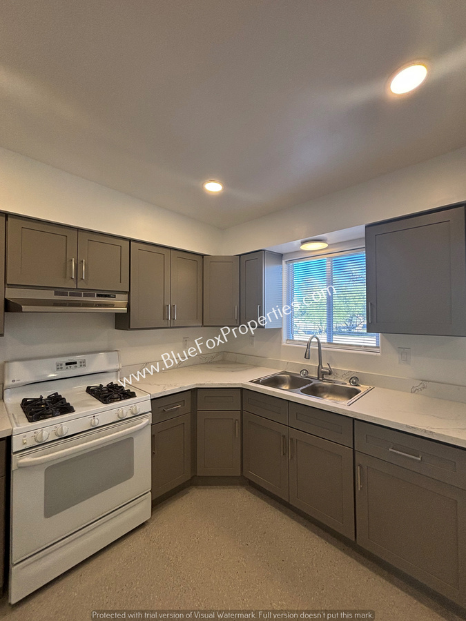 Discover this charming, fully remodeled 2-bedroom, 2-bathroom home, filled with natural light and a soothing neutral color palette. Step into a spacious and bright living room. The updated kitchen features stone countertops, brand-new cabinets, a refrigerator, stove, and a cozy dining area. Laundry room with washer and dryer hookups. The primary suite offers its own private bathroom with a standing shower. Outside, enjoy a generous backyard, ideal for gatherings, gardening, or outdoor activities. Additional features include a 1-car carport and a prime location close to the highway, downtown, and the University of Arizona. Lovingly cared for by the same family for over 80 years, this home radiates warmth, history, and pride of ownership.