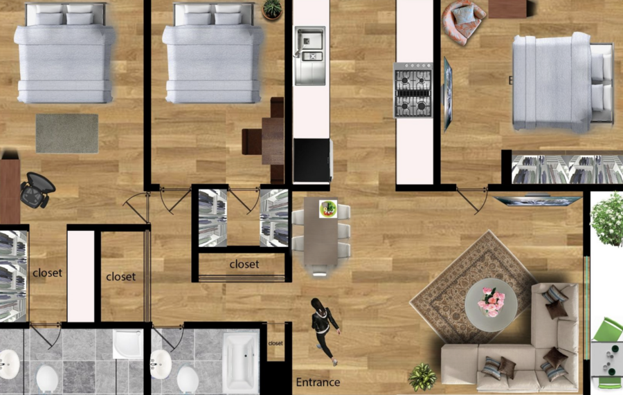 The apartment is equipped with central A/C and heating that cool and heat the entire unit quickly and efficiently.