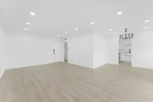 The freshly painted apartment has ceiling fans throughout. The numerous windows are decorated in vertical blinds. The entire apartment has been refreshed and updated.