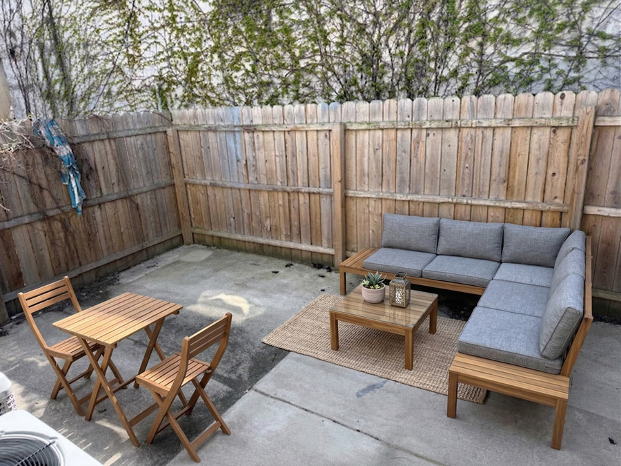 The interior features a clean, contemporary design with the essential comfort of Central AC. Both bedrooms are well-sized, and having two full bathrooms provides added privacy and convenience. The unit also has a large unfinished basement with a washer/dryer. One of the standout features of this home is the exceptionally large backyard, offering a rare amount of private outdoor space in the city for relaxing, gardening, or entertaining.