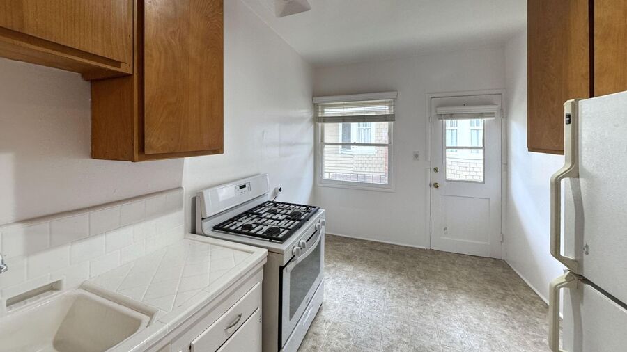 Located just moments from the Venice beach front, this bright upper-level studio apartment offers a spacious living area with brand-new flooring, abundant natural light, and refreshing ocean breezes. The full kitchen comes equipped with a stove, refrigerator, and generous cabinet and storage space, perfect for everyday cooking and convenience. The property features gated entry for added privacy and an on-site laundry room for easy access.