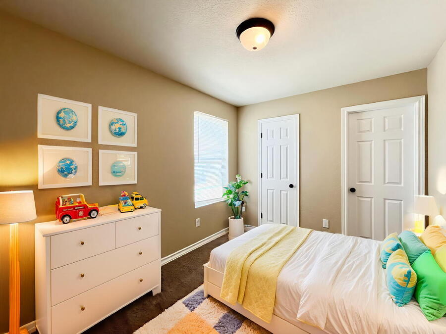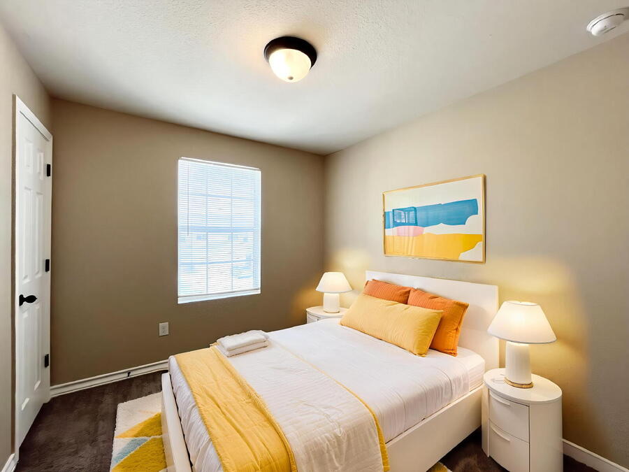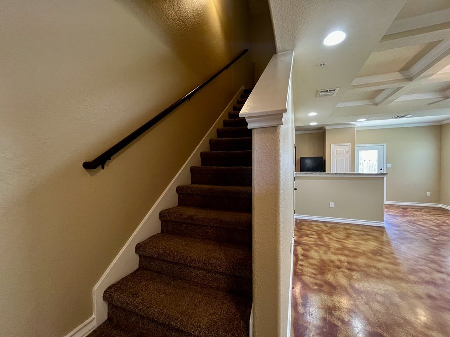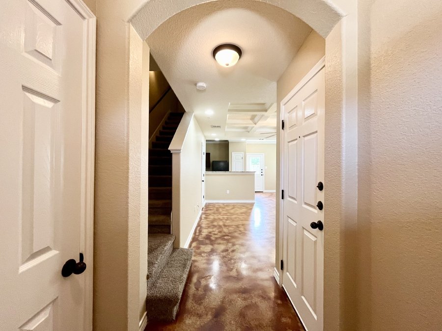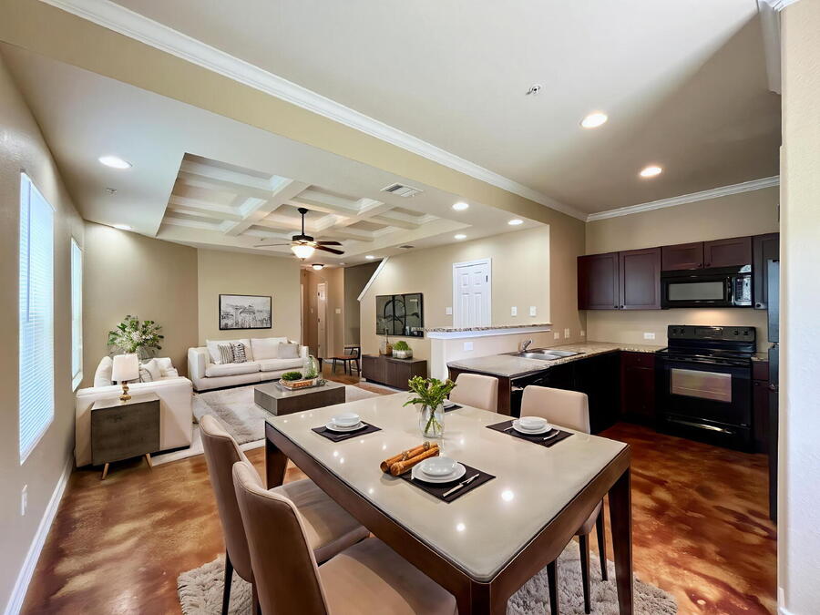 Experience modern townhome living in this stylish 3-bedroom, 2.5-bathroom, 2-story residence. Step inside and discover the inviting open floor plan, accentuated by high ceilings and stained concrete floors on the main level, with carpet flooring upstairs for a contemporary touch.