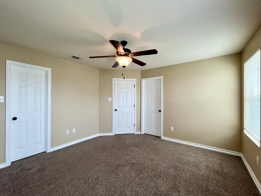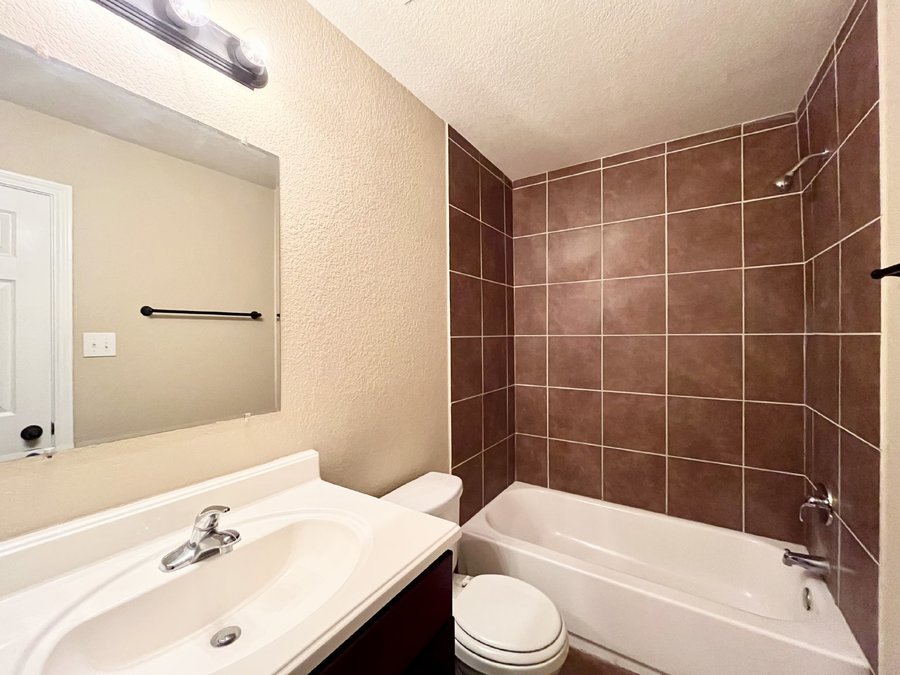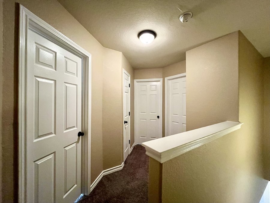 Upstairs, you'll find all bedrooms for privacy and comfort. The primary bedroom features an ensuite bathroom with a shower/tub combo, single vanity, and a spacious walk-in closet, providing a private retreat. Both upstairs bathrooms feature ceramic tile flooring, adding a durable and stylish finish to these essential spaces.