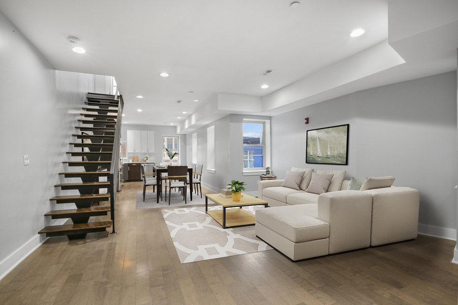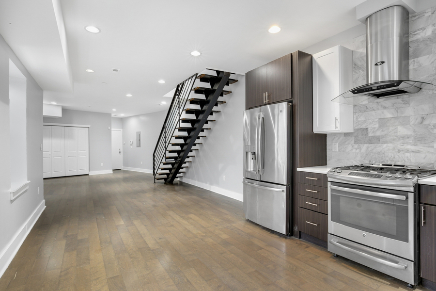 Discover contemporary living at 2512 Frankford Ave #2B! This spacious 2 bedroom, 2 bathroom apartment offers a rooftop deck, hardwood floors, high ceilings, and 2 levels of bright, airy rooms. There's a stacked washer/dryer for added convenience. Schedule your showing today!