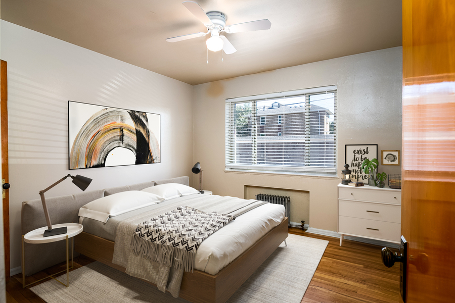 Beautiful two bedroom apartment with hardwood floors in a great location close to City Park! This first floor corner unit at 1520 Grape Street has south and east facing windows, a ceiling fan in the dining room, hardwood floors throughout, and FREE parking in the back of the building! The kitchen has a gas stove and a dining area which can fit a large dining table. The bedrooms both have large closets and windows. The bathroom has a tub, perfect for baths! The building has a secure entrance unlocked with a key in the front, and the back door is keyless entry with a 4-digit door code. There is on site laundry that is app-based (no quarters needed) and has bike storage with rails to secure them.