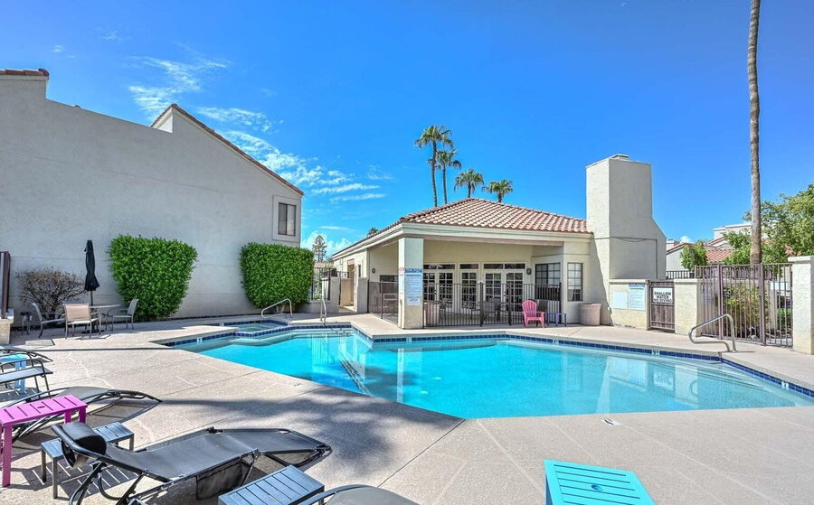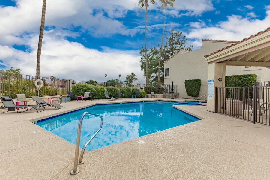 Free Application - Come see this adorable 2 bedroom 2 bathroom townhome in gated Arrowhead Lakes Community in North Glendale Community. For showings, rental qualifications and applications visit Cadaci online. This unit has a one car garage and one assigned covered parking space. This home is clean and move in ready. Tile flooring throughout, ceiling fans in all the rooms, plantation shutters on windows and doors. Kitchen features a smooth top electric stove, dishwasher, refrigerator and countertop microwave. Full size washer and dryer in unit. Peaceful and private back patio steps away from the pond. Community amenities include a heated pool, spa, club house and golf course views. Easy access to the 101 freeway, close to shopping, dining, schools, hiking, golfing, and more.Assigned Covered Parking