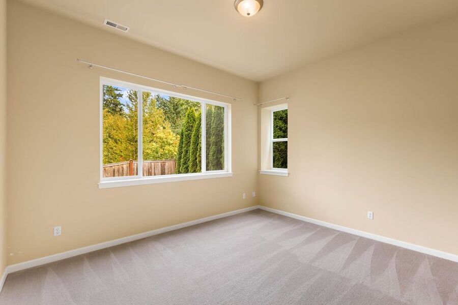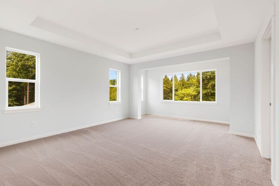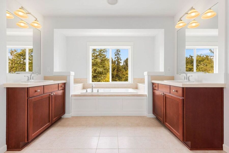 The primary bedroom is a retreat. Large and bright with a spa like bathroom. Double sinks, soaking tub and a walk in closet.