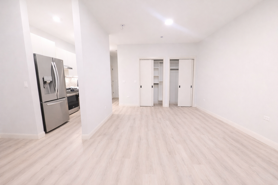 Newer construction rental community in an amazing Uptown location. Bright south facing studio with great natural light and unobstructed view of the city. Sleek kitchen with backsplash, stainless steel appliances, quartz countertops, and plenty of soft close cabinetry. Smart layout offers good separation and comfortable living space, plus a nook ideal for a home office. Features include plank flooring, in unit laundry, solar shades, central heat and air, modern finishes, and generous closet space. The nearly new bathroom includes a lighted mirror and walk in shower. Building amenities include a 24 hour fitness center, bike storage, onsite parking available ($200 per month), and a work from home business center with four private Zoom rooms. Prime Uptown location, steps from restaurants and shopping, a two minute walk to the Red Line and Target, and easy access to the lake and Lake Shore Drive. Pets welcome with fee, dogs up to 50 lbs. **Photos may be of a similar unit with the same finishes, floor plans may vary.