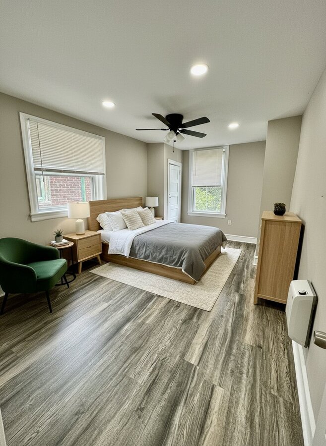 Fully renovated top-floor 2-bedroom, 1-bathroom apartment available for rent at 4323 North 8th Street, Unit 2. This bright and updated home features beautiful hardwood floors throughout, a modern kitchen and bathroom, and includes a refrigerator, microwave, and stove.