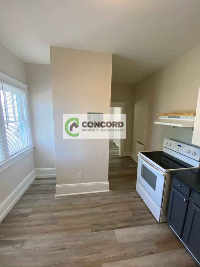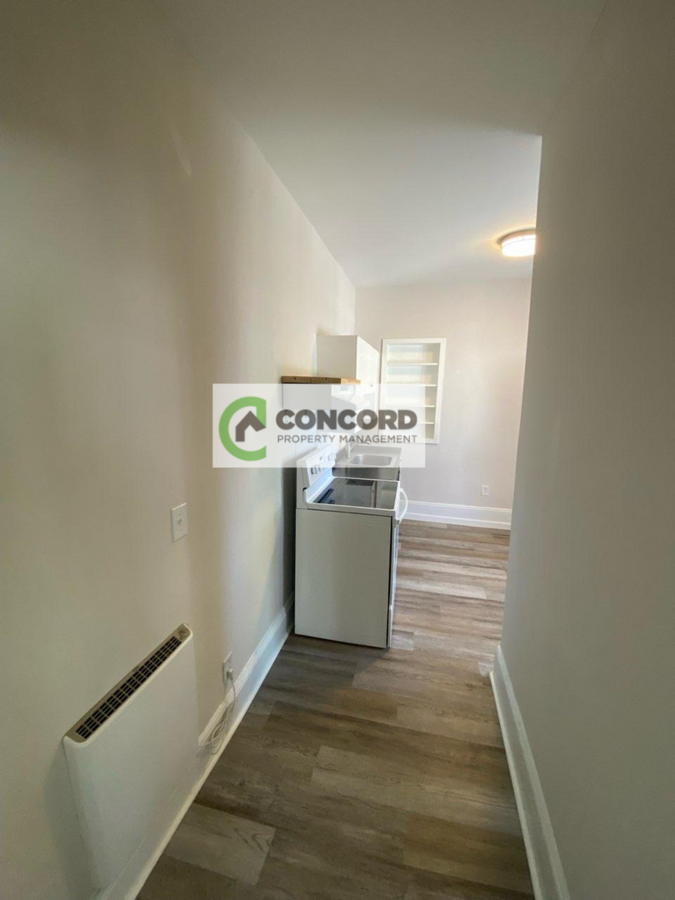 1 Bedroom, 1 Bath Apartment- Beautifully renovated vinyl flooring through out. Main room has access to the mass charming front porch. Window A/C, electric heat. Kitchen features space for a small table. Stove fridge shelves for storage and a cubby where you can put an additional shelf for more storage. Renovated bathroom. ALL ELECTRIC. ON STREET PARKING (Tenant is responsible for all utilities, water and hot water included in the rent)