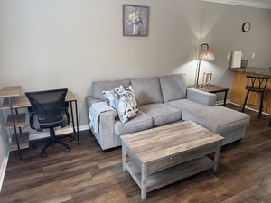 Full-sized apartment with full-sized kitchen appliances and separate bedroom, yet it is only about 1/2 THE PRICE OF A HOTEL SUITE! Even includes a full size, stackable washer/dryer. Utilities, Satellite TV, Internet and All Housewares are included.