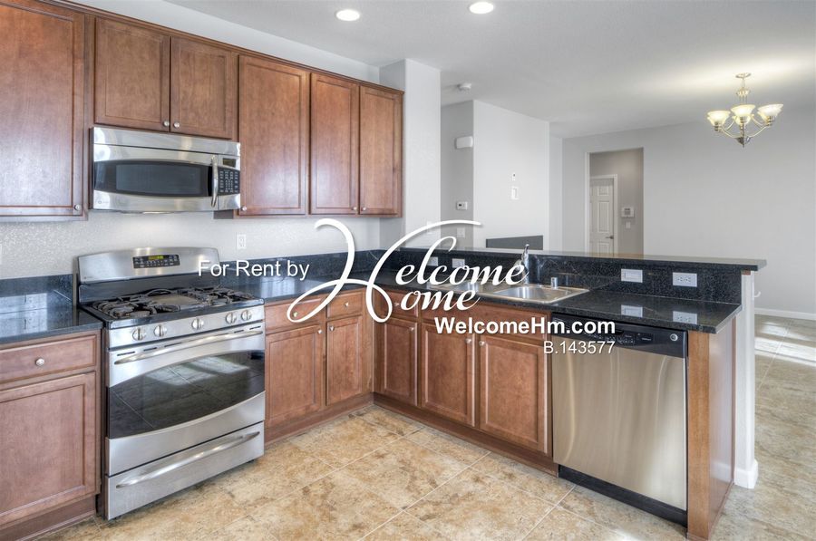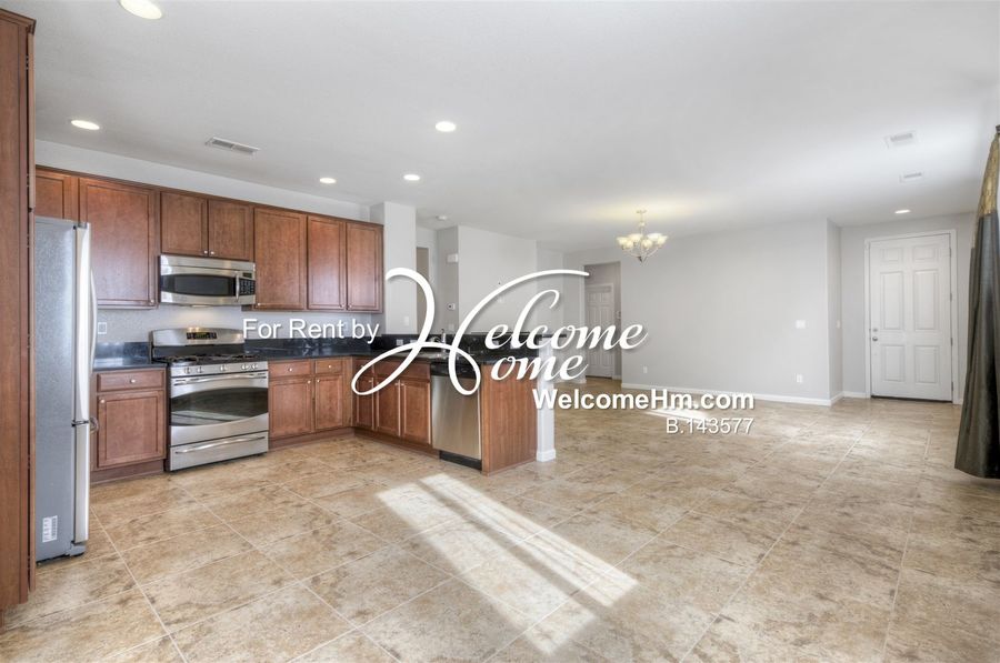 Beautiful single-story home in Damonte Ranch featuring 4 bedrooms, 2 bathrooms, and an open-concept layout with high ceilings and a cozy gas fireplace. The chef’s kitchen includes GE Profile stainless steel appliances, black granite counters, and rich cabinetry. Enjoy a spacious master suite with dual sinks, garden tub, and walk-in closet. Home also offers a 3-car tandem garage, large stained concrete patio, and low-maintenance landscaping. Close to parks, schools, and shopping. Washer, dryer, and fridge included.