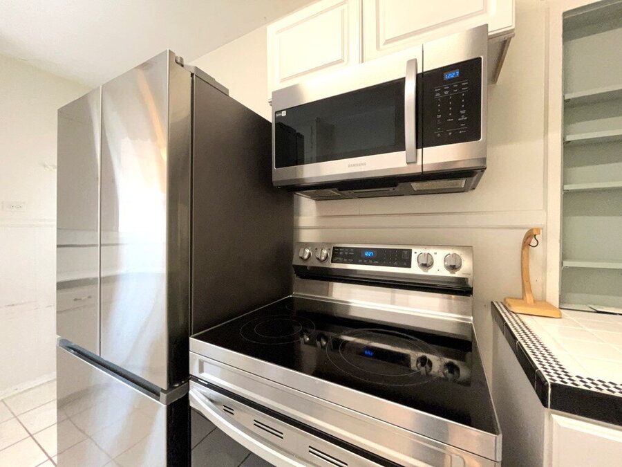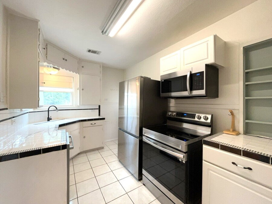 Welcome to this charming and well-appointed 2-bedroom rental home, designed to provide both comfort and convenience. Featuring modern amenities such as a dishwasher, electric stove with a glass cooktop, microwave and refrigerator, this kitchen is fully equipped for all your culinary needs. The solid countertops and ceramic tile flooring offer both style and durability.