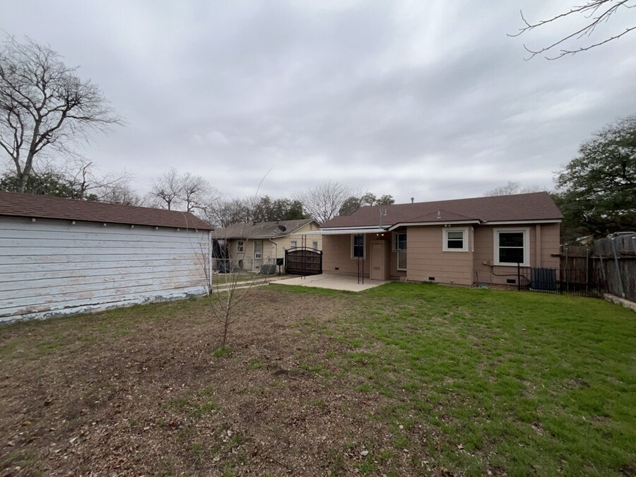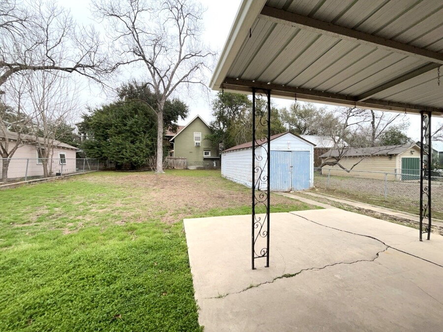 Additional highlights of the home include a laundry room in the kitchen with a washer and dryer, double-pane windows and modern window coverings. The property also features a covered patio, a level yard with mature trees, a storage building/shed and a chain-link fence for privacy and security.