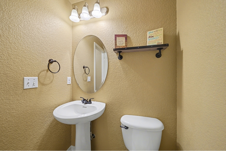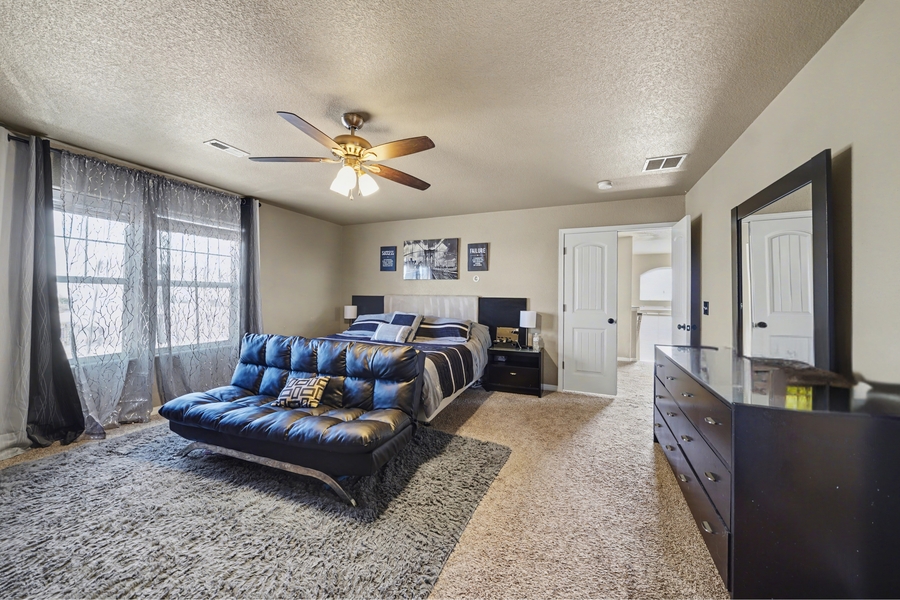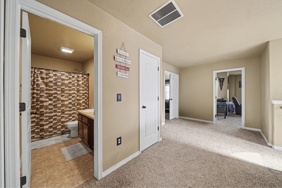 Upstairs, retreat to the spacious primary suite featuring a luxurious five-piece bath with a garden tub and a massive walk-in closet complete with built-in shelving. Two additional bedrooms are also located upstairs, including one with a walk-in closet, along with an oversized bonus room offering endless possibilities for a non-conforming bedroom, media room, playroom, or second living space. A full bathroom and an upstairs laundry room—with washer and dryer included—complete the upper level.