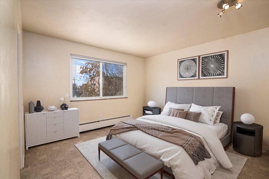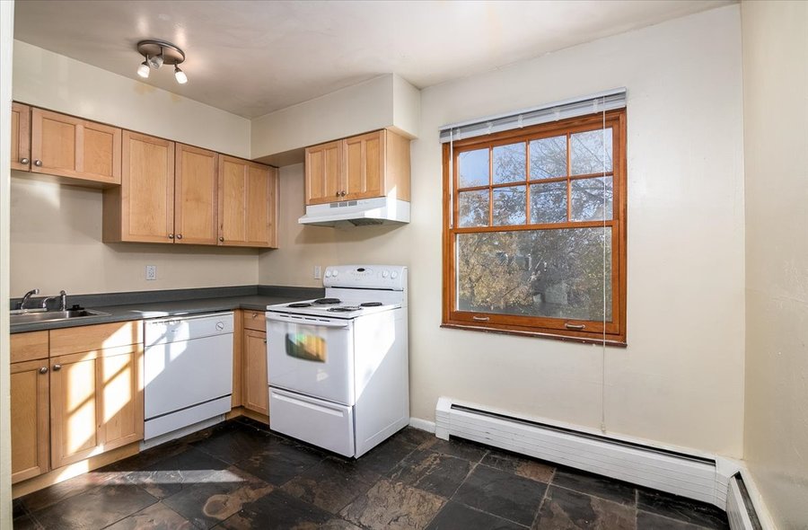 Beautiful two bedroom apartment in Baker neighborhood! This third-floor apartment at 43 Sherman Street is a bright apartment with North facing windows, wood inspiring flooring in the living room/bedrooms, and tile in the kitchen/bathroom. The living room has a wall A/C unit included. The kitchen has a gas stove, lots of cupboard space and a sleek backsplash. This unit offers a huge walk-in closet as well as a linen closet as well. The building has a storage room as well as on-site laundry that is paid through an app (no quarters needed). The apartment is on a quiet street but 2 blocks away from South Broadway!
