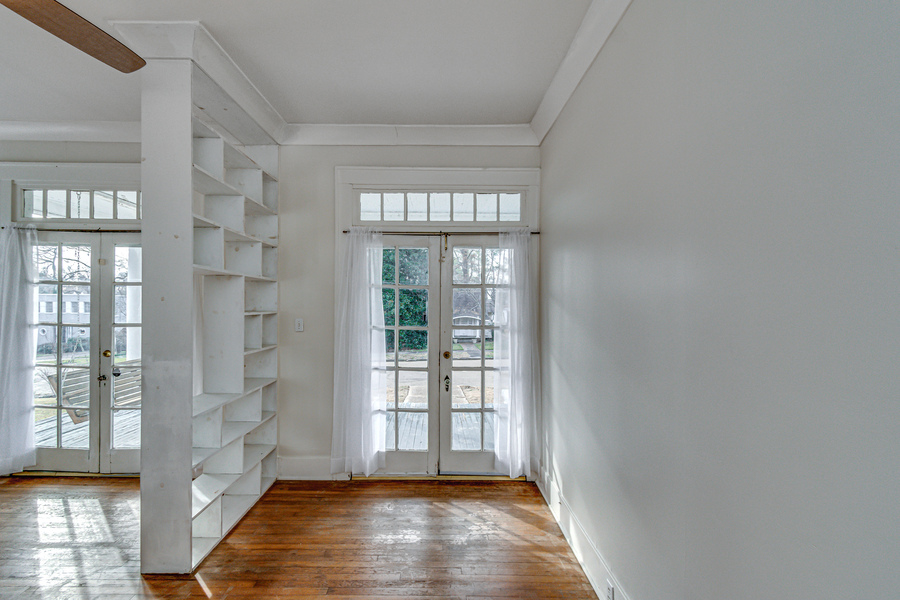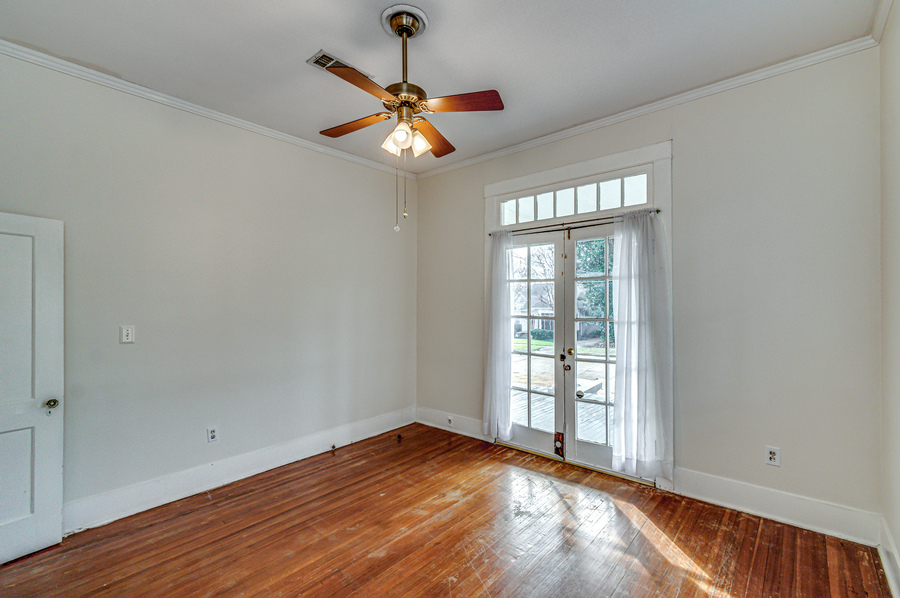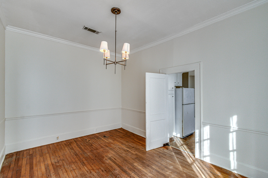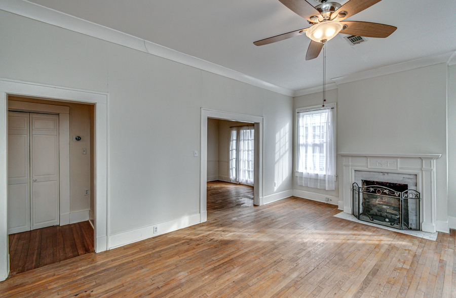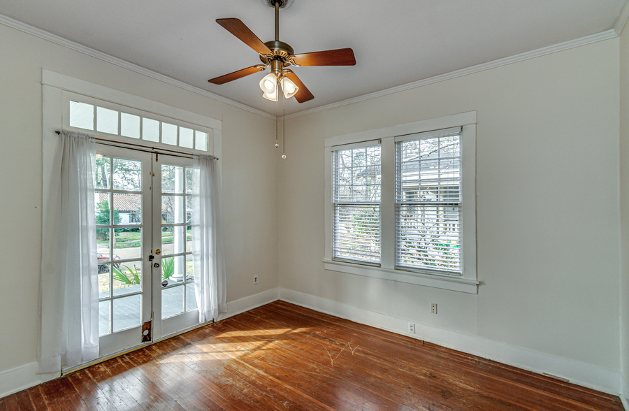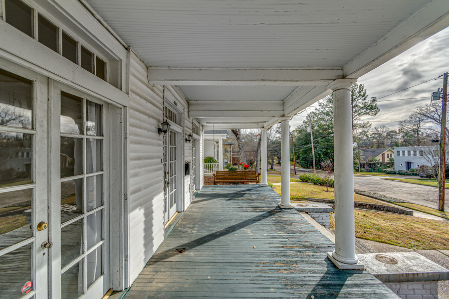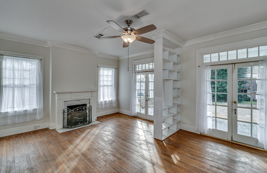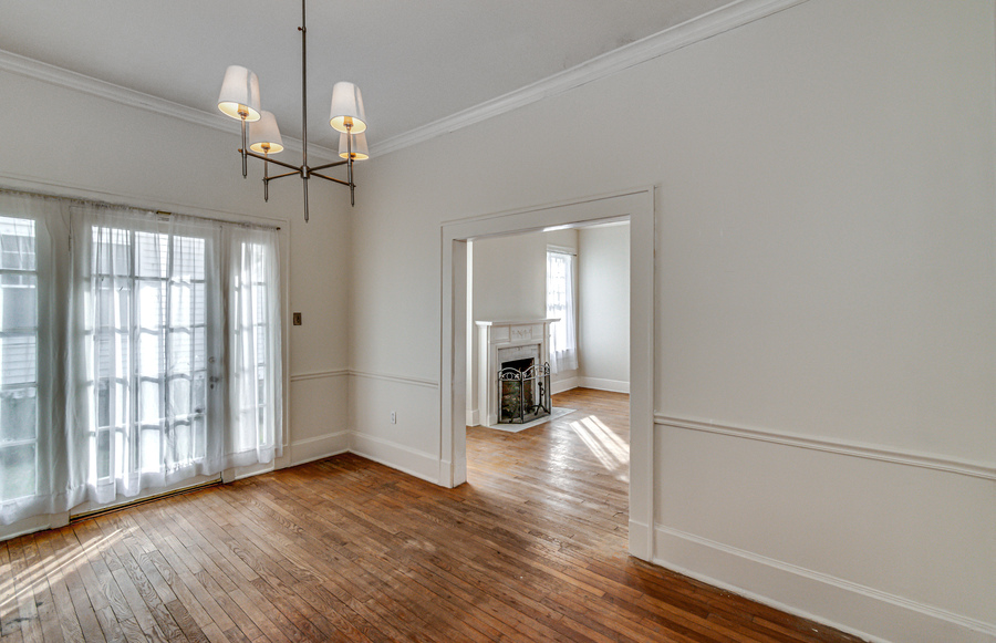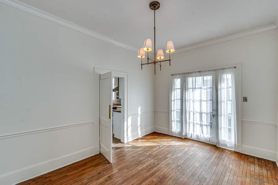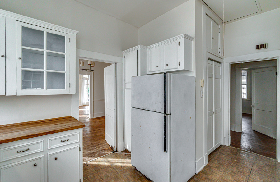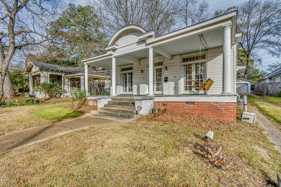 Live in a piece of Jackson’s history when you rent this 3 bedroom, 2 bath, 1828 sq. ft. home in Belhaven. This home was built by one of the descendants of the first settlers of Jackson and it has maintained much of that original 1923 character. This home has 11 foot ceilings, gorgeous wood floors throughout, and three sets of French doors along the front of the house that open out onto the large covered front porch. The living room has an open feeling with its tall ceilings and natural light and has gorgeous crown molding and marble fireplace. The living room is two-toned with white wainscoting and berry-colored walls that make the space feel intimate. The kitchen is just off the dining room and it has been updated with white cabinets, butcher-block (wood) counter tops, and has stainless steel appliances (dishwasher and stove (electric)), and has a walk-in pantry/storage area.