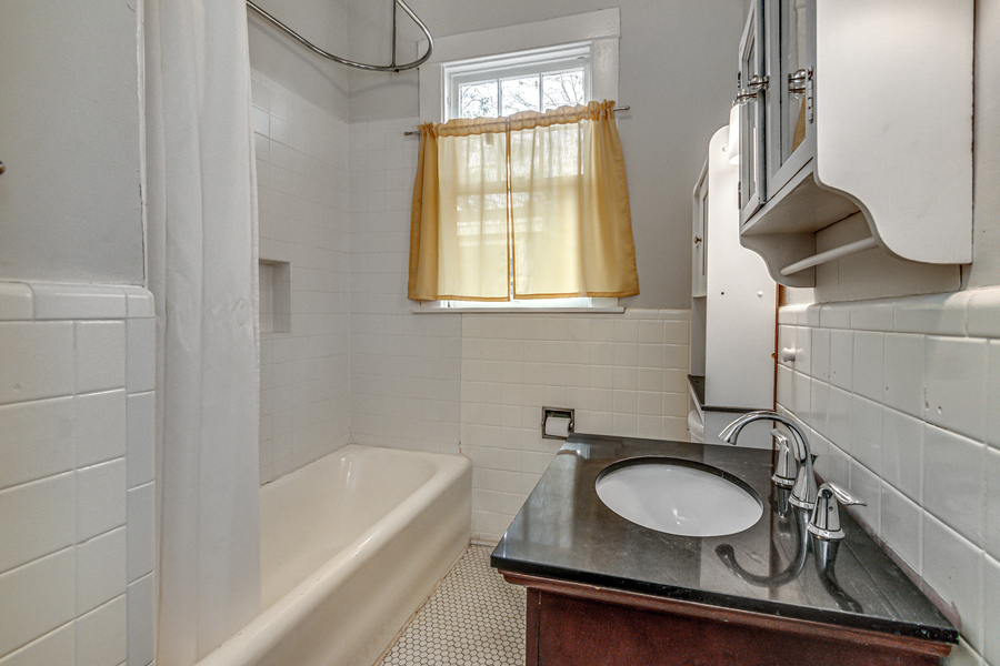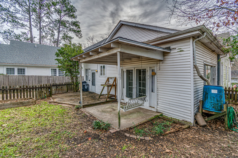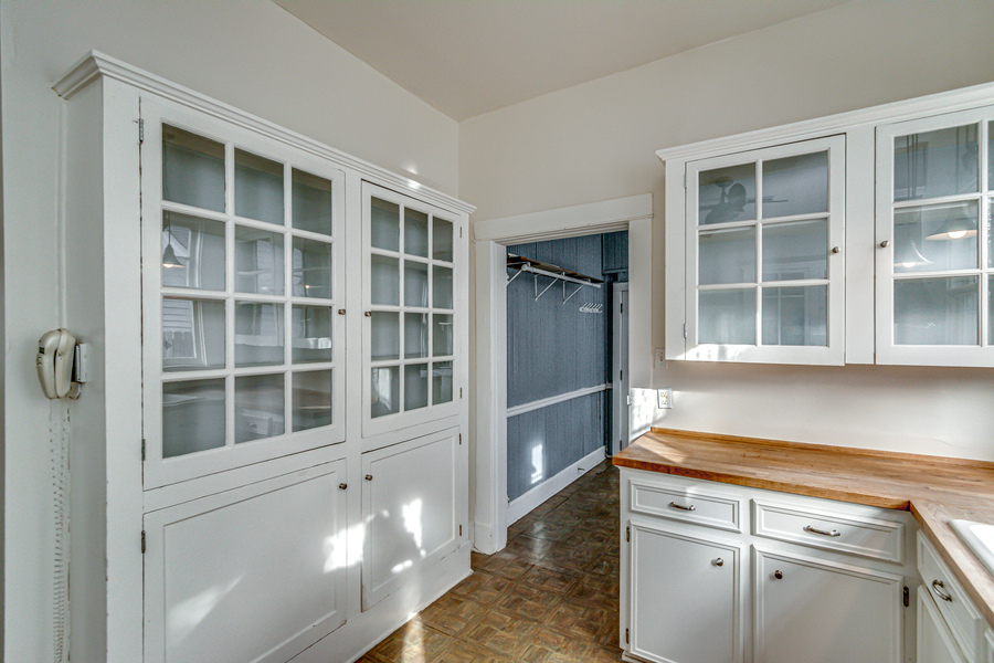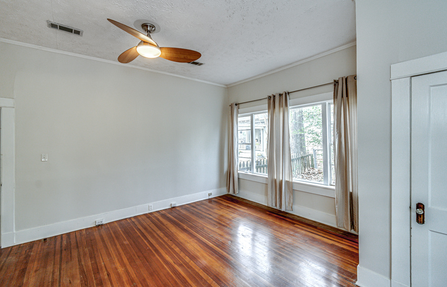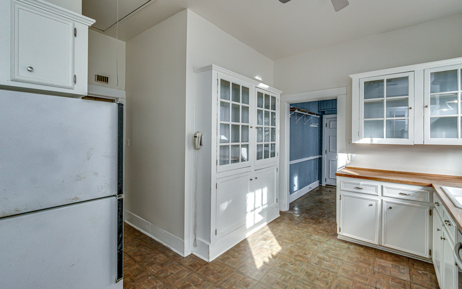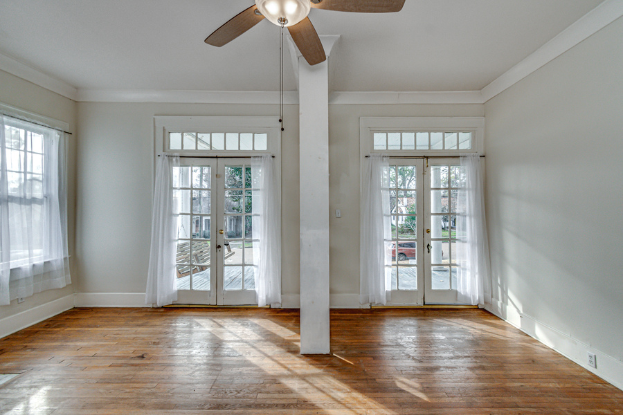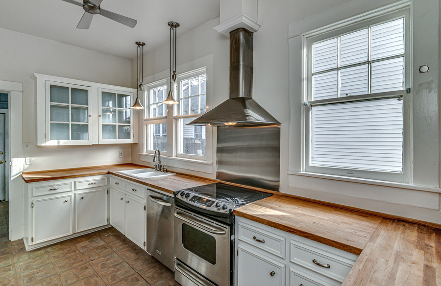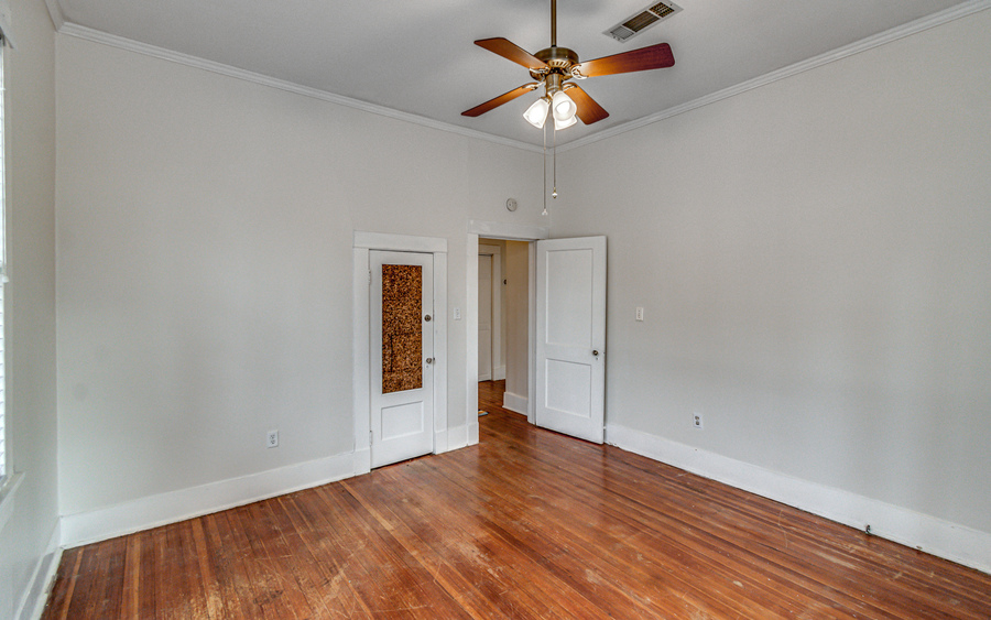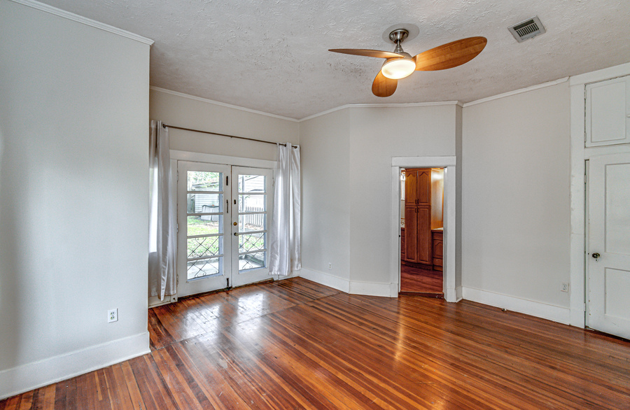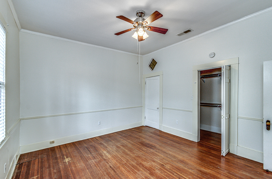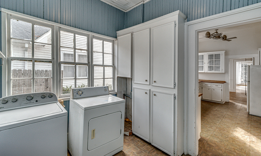 Live in a piece of Jackson’s history when you rent this 3 bedroom, 2 bath, 1828 sq. ft. home in Belhaven. This home was built by one of the descendants of the first settlers of Jackson and it has maintained much of that original 1923 character. This home has 11 foot ceilings, gorgeous wood floors throughout, and three sets of French doors along the front of the house that open out onto the large covered front porch. The living room has an open feeling with its tall ceilings and natural light and has gorgeous crown molding and marble fireplace. The living room is two-toned with white wainscoting and berry-colored walls that make the space feel intimate. The kitchen is just off the dining room and it has been updated with white cabinets, butcher-block (wood) counter tops, and has stainless steel appliances (dishwasher and stove (electric)), and has a walk-in pantry/storage area.