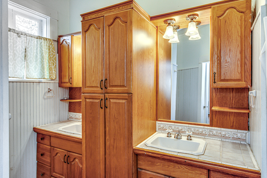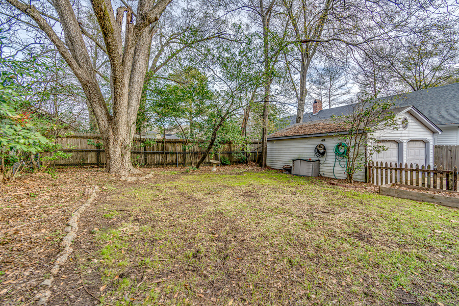 The Primary Suite is nice sized with large walk-in closet in addition to a cedar closet, French doors that open to a covered backyard patio, and has a Primary Bath featuring dual sinks as well as lots of cabinet space. The other two bedrooms are spacious with ample closet space. The second bathroom has been updated and has a bath/shower combo.