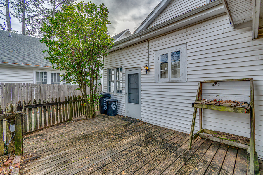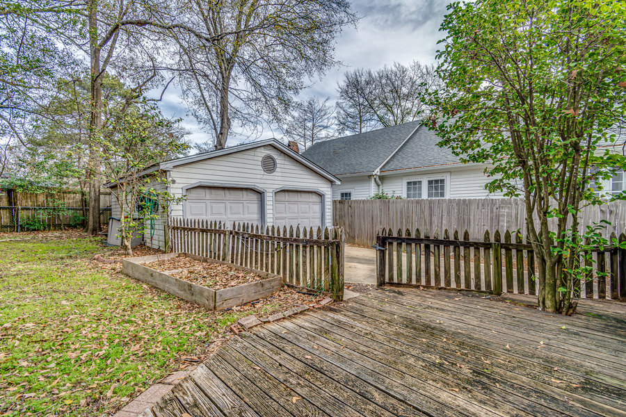 This home has a two car garage, driveway parking, and in addition to the covered patio in the fenced-in backyard, it has a small deck.