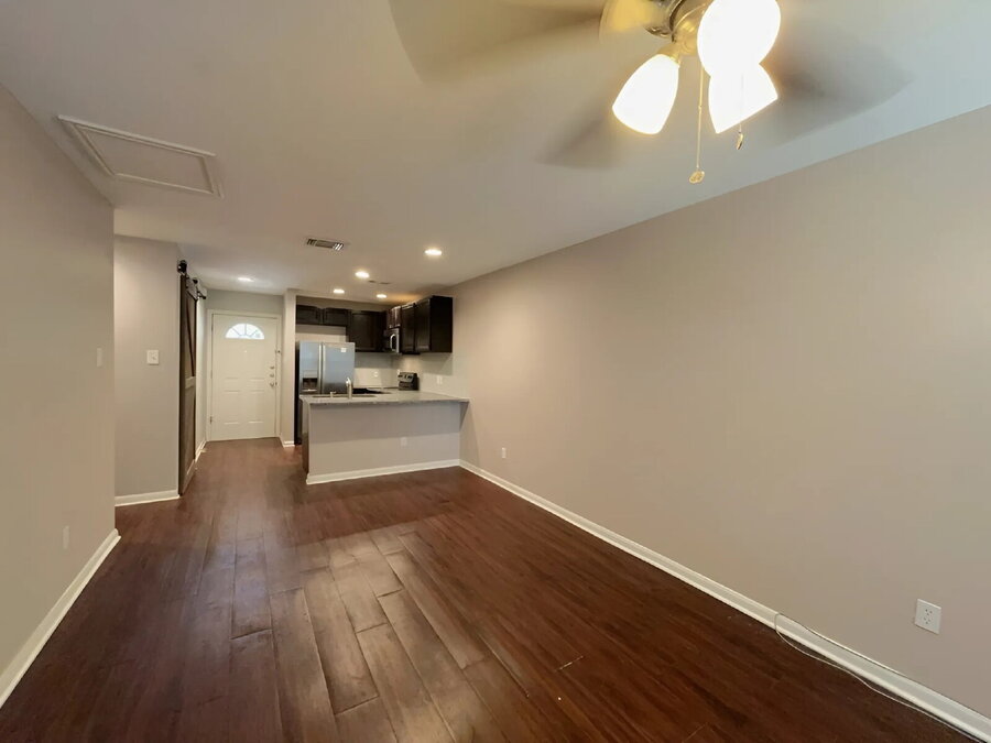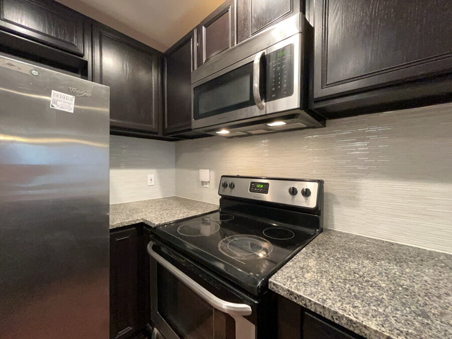The kitchen is thoughtfully designed with a breakfast bar, electric stove, dishwasher, microwave and refrigerator everything you need to cook and dine with ease. A dedicated laundry space tucked into a closet comes equipped with washer and dryer hookups for added convenience.