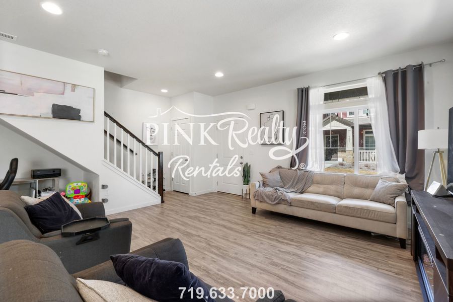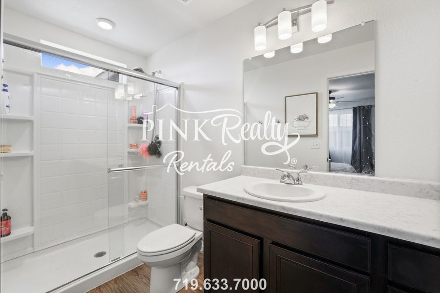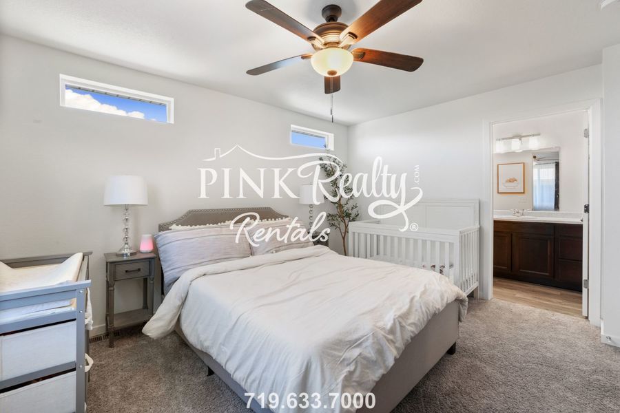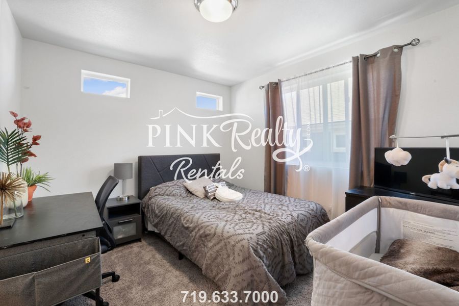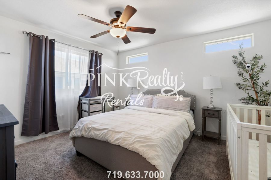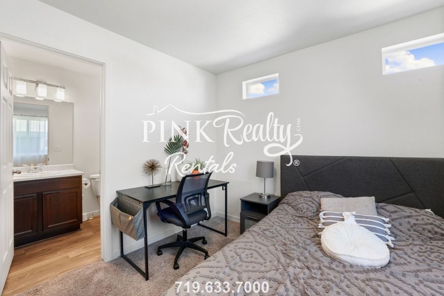 Don't miss out on this cute 2 bedroom, 2.5 bath home in Banning Lewis Ranch! Walk into the main floor to be greeted by a cozy living room that flows into the open-concept kitchen and dining area. There is a convenient half bath on the main level, as well as a walk out to the attached 2 car garage. head upstairs and you will find the 2 bedrooms, each with their own private attached full bathroom. The laundry area is located upstairs as well. This home is close to the Powers corridor that has plenty of shopping! It is also located close to Schriever AFB and Peterson AFB. Tenants will have access to all neighborhood amenities! This community offers a clubhouse with 24-hour fitness room and outdoor Jr. Olympic heated pool, tennis courts, tons of trails and parks throughout and much more! https://banninglewisranch.com/life-here/amenities/