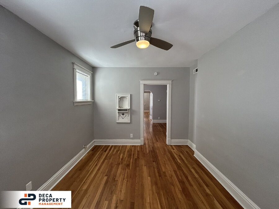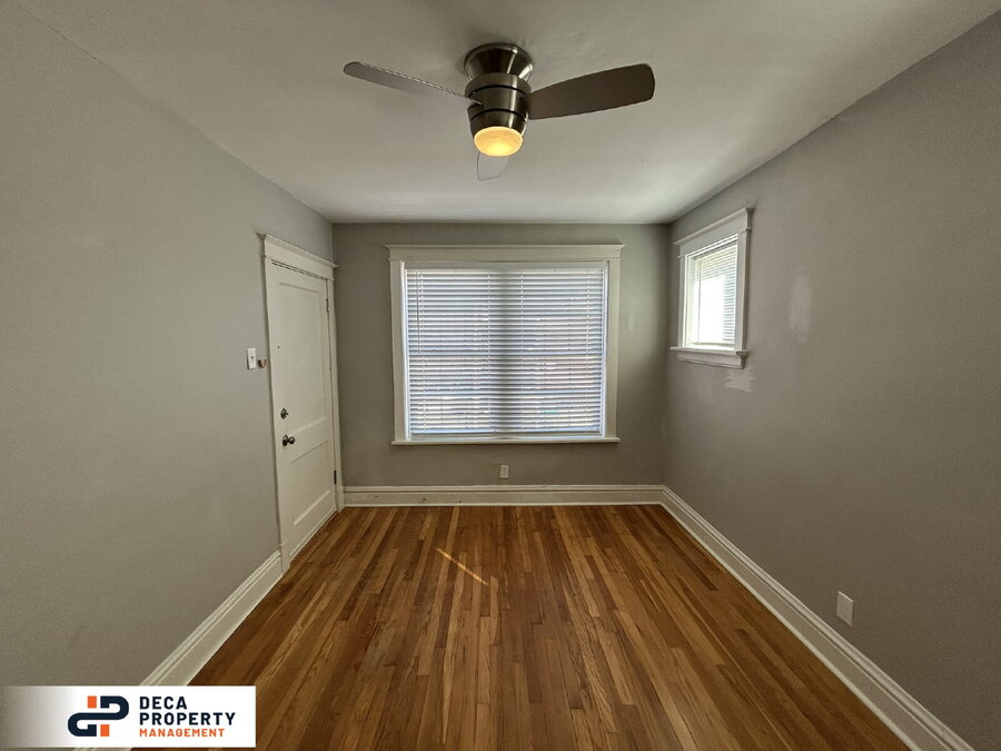 Charming and beautiful one-bedroom apartment for rent! Enjoy the classic appeal of a brick façade that adds timeless character and curb appeal. Step inside to a spacious living room featuring gleaming hardwood floors, a ceiling fan, and additional accent windows that fill the space with natural light.