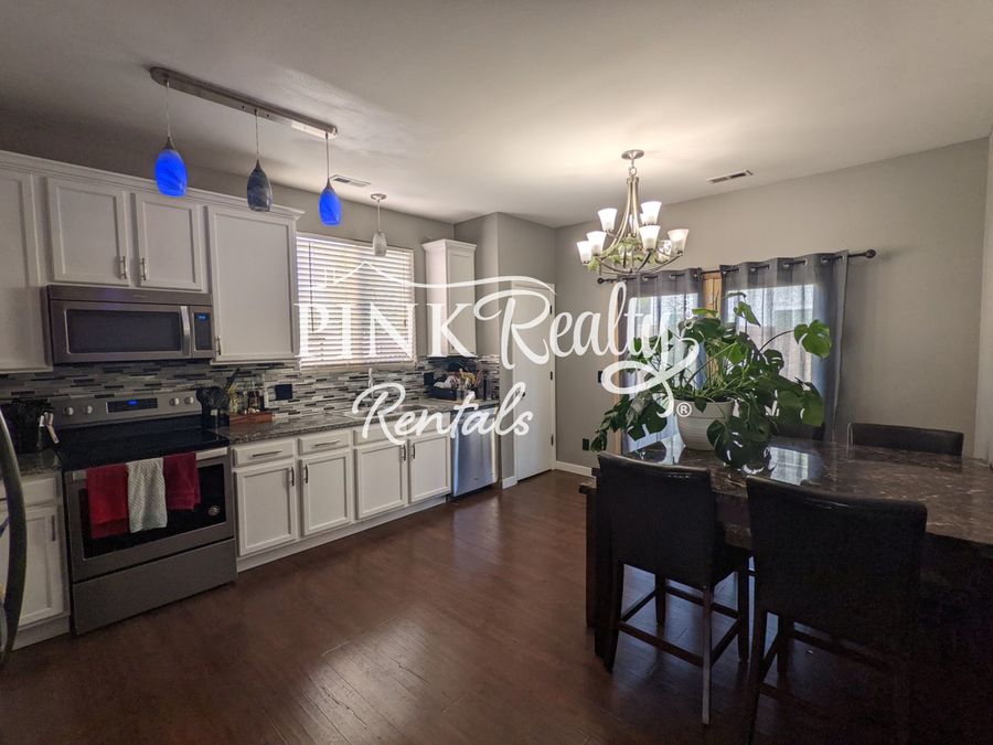 This home has 3 bedrooms and 2.5 bathrooms, with 1300 sq ft of living space. Beautiful dark flooring throughout and carpet in the bedrooms, with a 2 car garage and full privacy fence in the backyard, with a patio and walk out from the kitchen/dining area. All main level living in this rancher! The energy-efficient solar panels not only help reduce your carbon footprint but also contribute to lower utility bills!