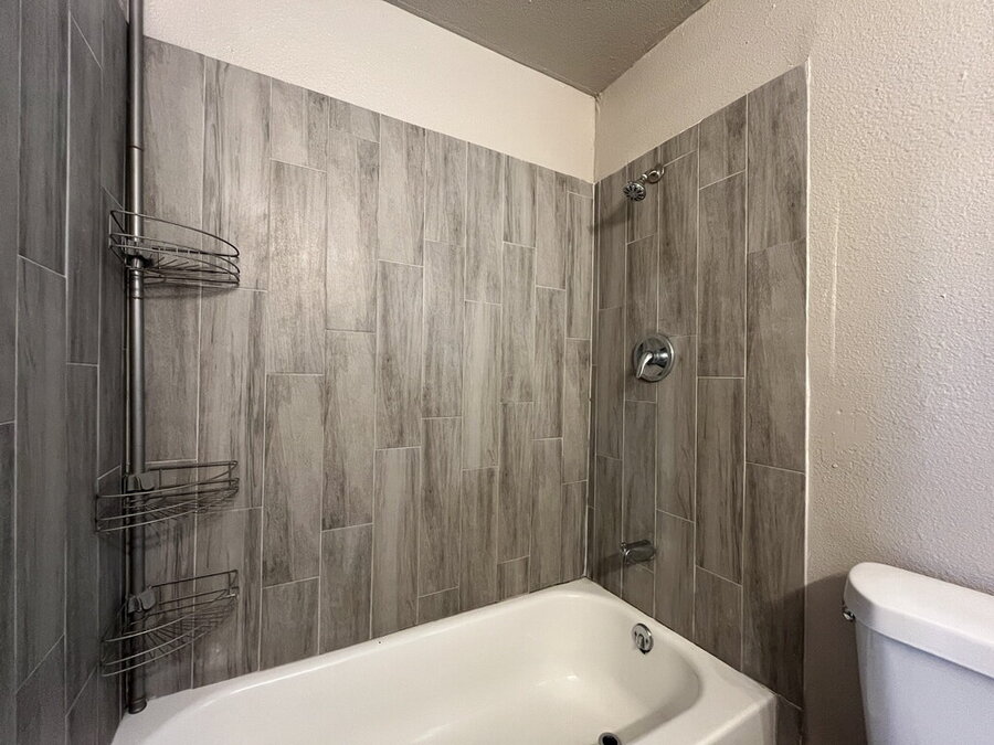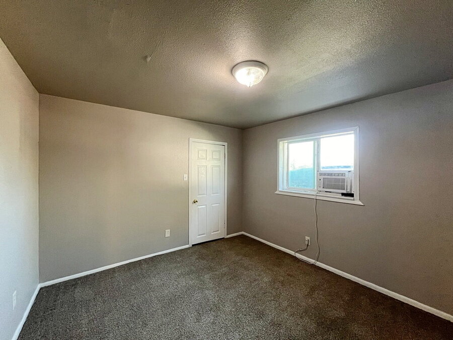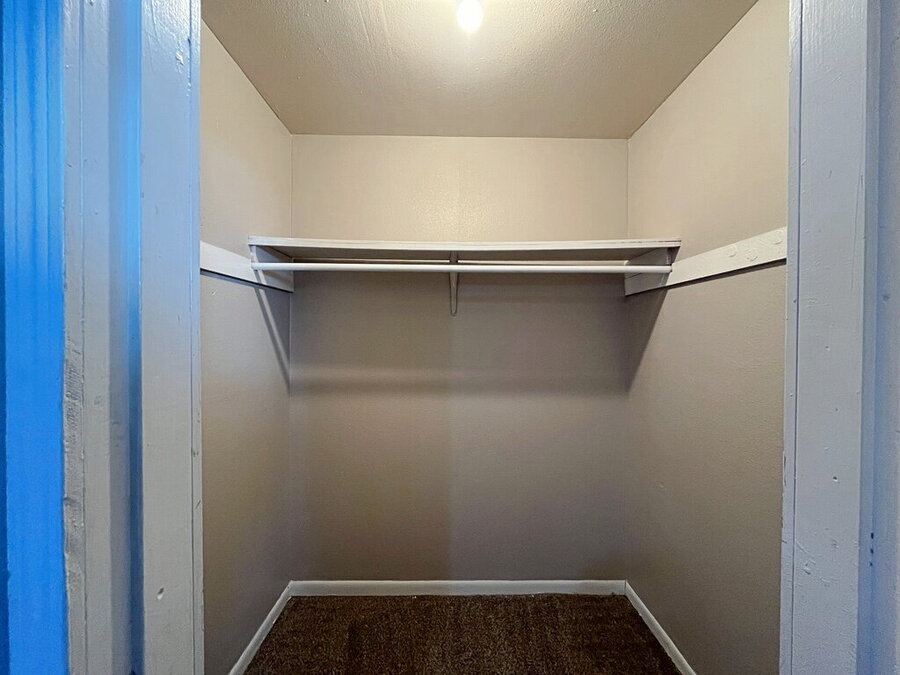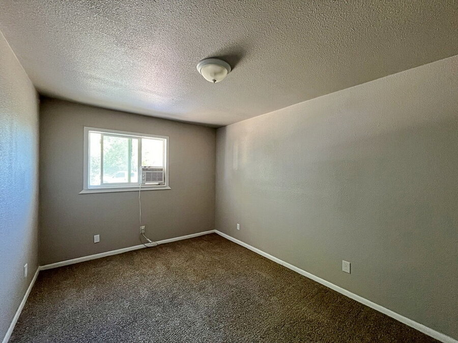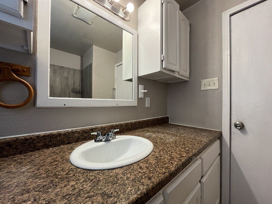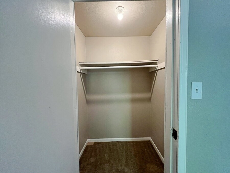 The primary bedroom includes a generous walk-in closet, and the shared bathroom features a tub/shower combo and a single vanity for everyday ease. Outdoors, enjoy the natural beauty of mature trees surrounding the property, plus the convenience of two assigned parking spaces. Located near shopping and everyday essentials, this home offers a great balance of privacy and accessibility.
