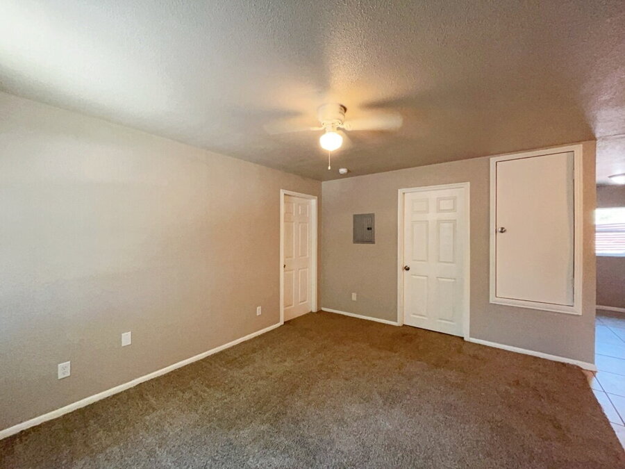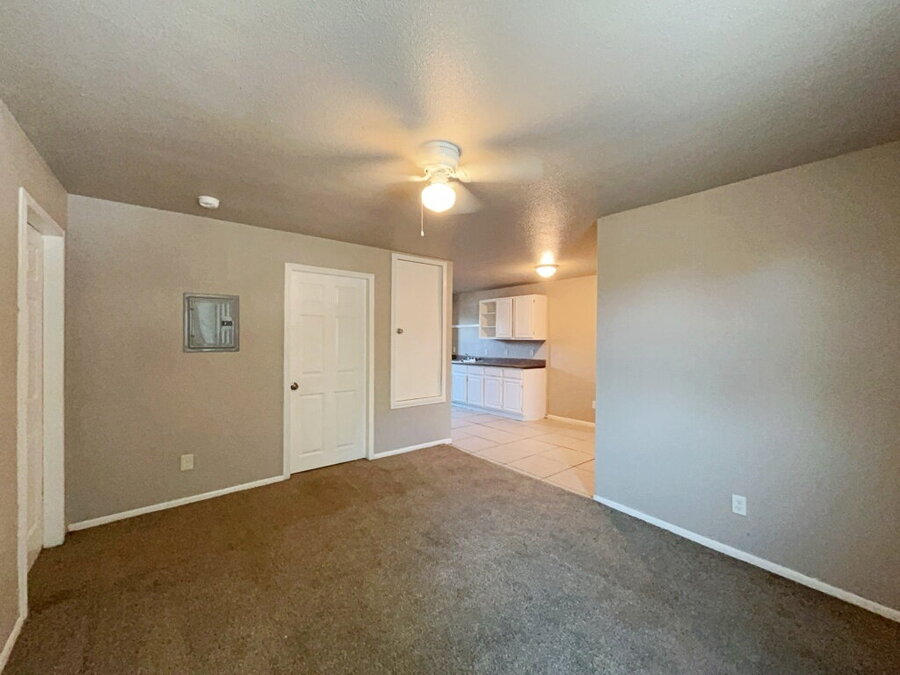 Step into this inviting 2-bedroom, 1-bath home that blends comfort with functionality. Featuring a spacious open floor plan, the interior offers a mix of cozy carpet and easy-to-clean ceramic tile flooring throughout.