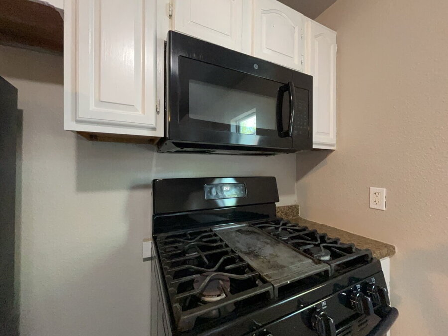 The well-appointed kitchen includes a gas stove, microwave and refrigerator, along with a bright eat-in area perfect for casual dining. A ceiling fan adds extra comfort to the main living space, while a carbon monoxide detector ensures peace of mind.