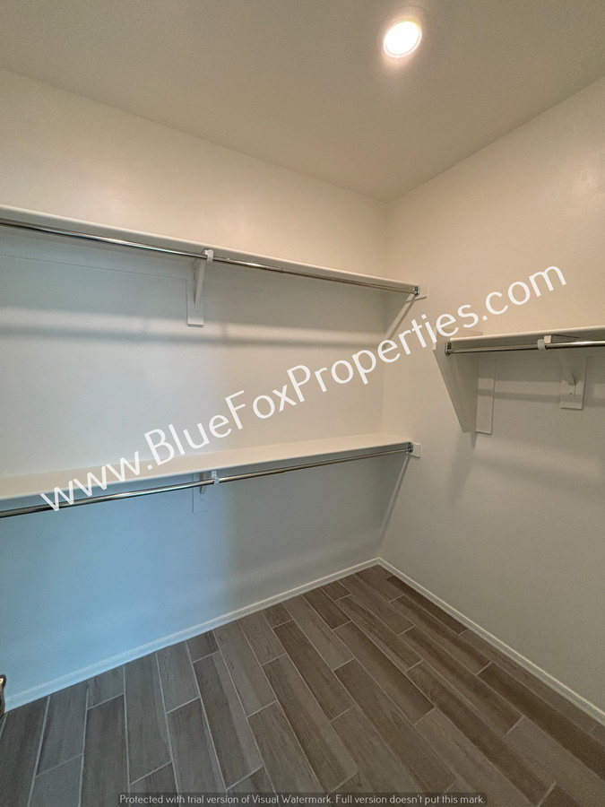 Enjoy the convenience of a dedicated laundry room with washer and dryer hookups. The primary bedroom features a walk-in closet and an ensuite bathroom with a dual-sink vanity and serene views of the backyard.