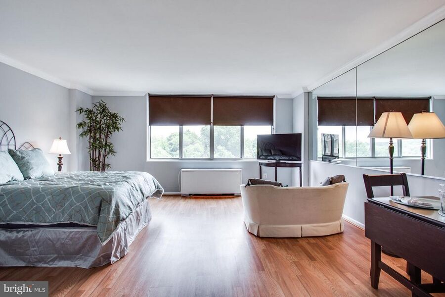 11th-floor studio in a full-service condominium building! Welcome to Van Ness East. Unit #1134 features a bright, open floorplan, abundant closet space, and oversized windows that fill the unit with natural light. Residents enjoy an impressive array of amenities including a 24/7 front desk concierge, outdoor swimming pool, fitness center, library, party room, and more. With comfort, convenience, and exceptional building services, this is the perfect place to call home. All utilities are included in rent too!
