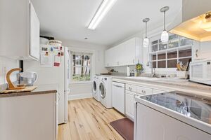 2 BR, 1 BA single family home. Hardwood and tile flooring throughout. Eat-in kitchen includes fridge, gas stove, and dishwasher. Laundry/storage area with washer and dryer provided. Attic storage. Natural gas heat and central A/C. Off street parking.