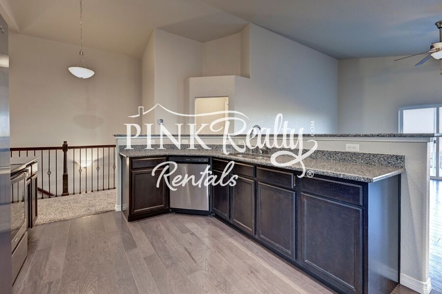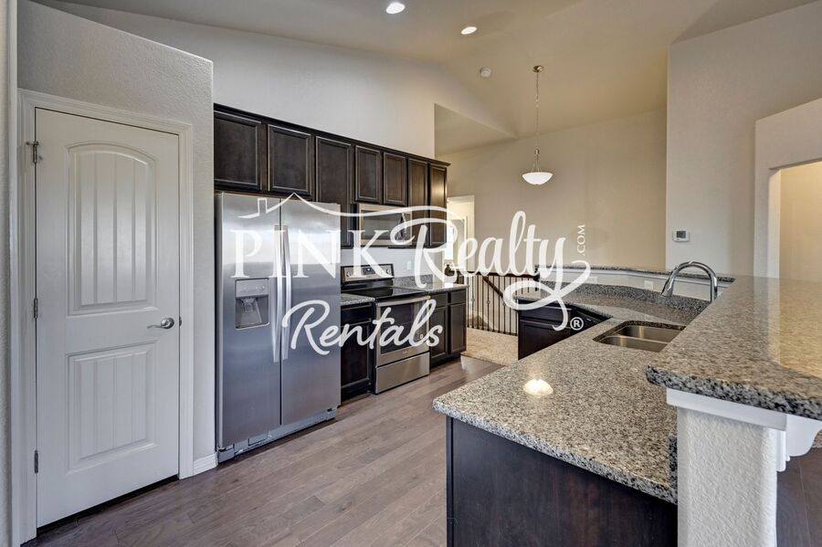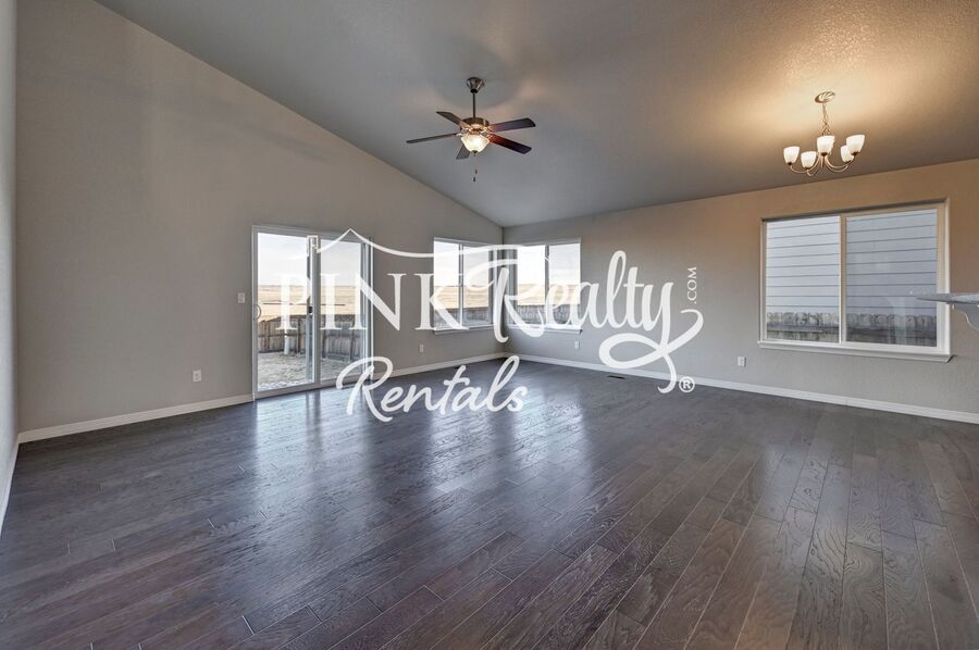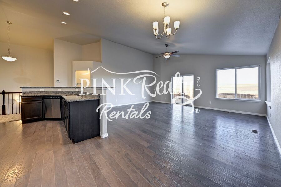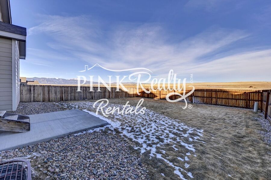 This amazing ranch home is located within 10 minutes of Schriever AFB, Peterson AFB, and Fort Carson* The Airport, shopping, and dining are all close by too* This home offers a bright and open floor plan with the Living Room, Kitchen and Dining Room open to each other* You will notice the beautiful wood floors that flow throughout the main living area* The Living Room features tall vaulted ceilings and a walk-out to the patio* The gourmet Kitchen features granite countertops, stainless steel appliances, upgraded cabinets with crown molding, a pantry, and a counter bar with seating* The spacious Master Bedroom has vaulted ceilings, a large window that allows natural light into the room, walk-in closet, and a 5-Piece Master Bath* There are 2 additional Bedrooms that share a full Bath and Laundry area on the main level* The basement is fully finished with a huge Family Room/Rec Room that would be great for entertaining* There are 2 large Bedrooms, a full Bath, and storage area in the Basement* The large Backyard has breathtaking mountain views and is fully fenced with a concrete patio area*
