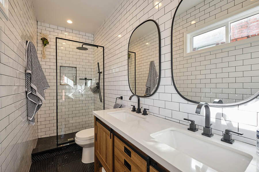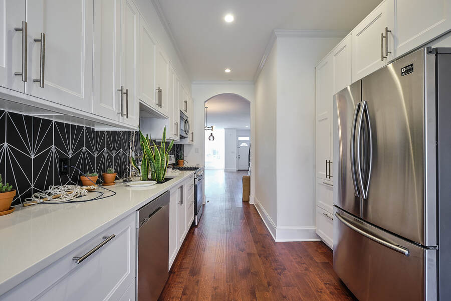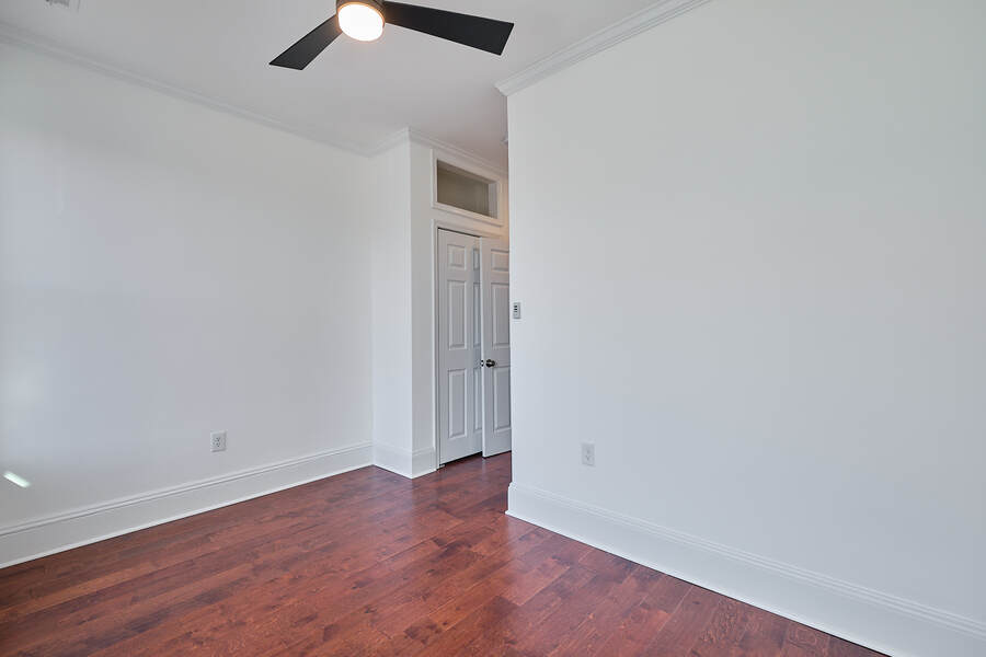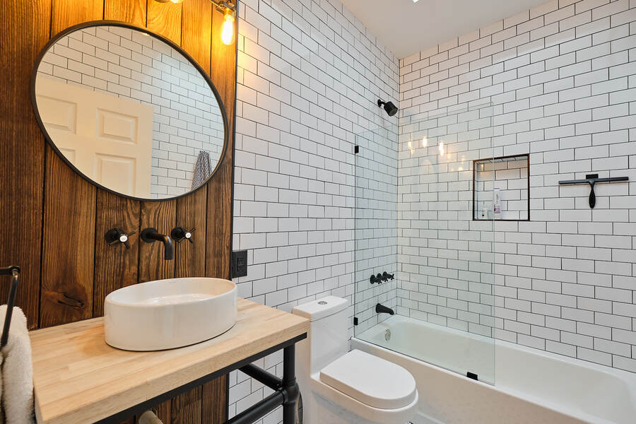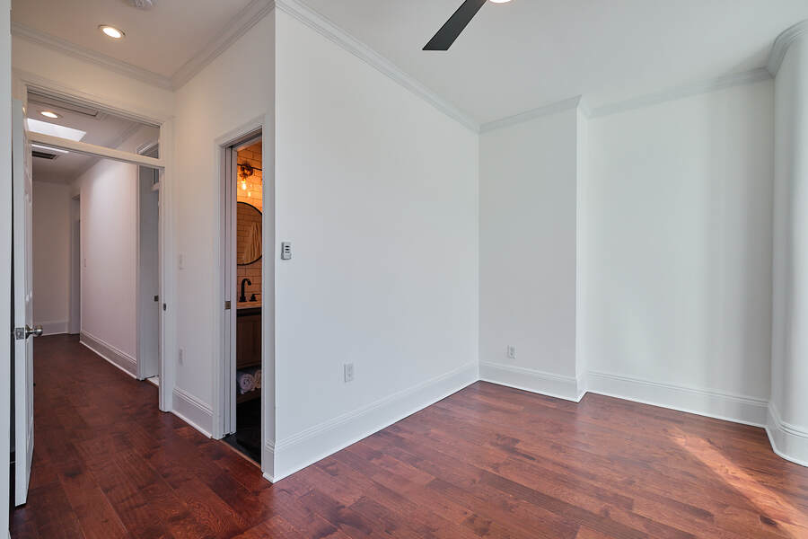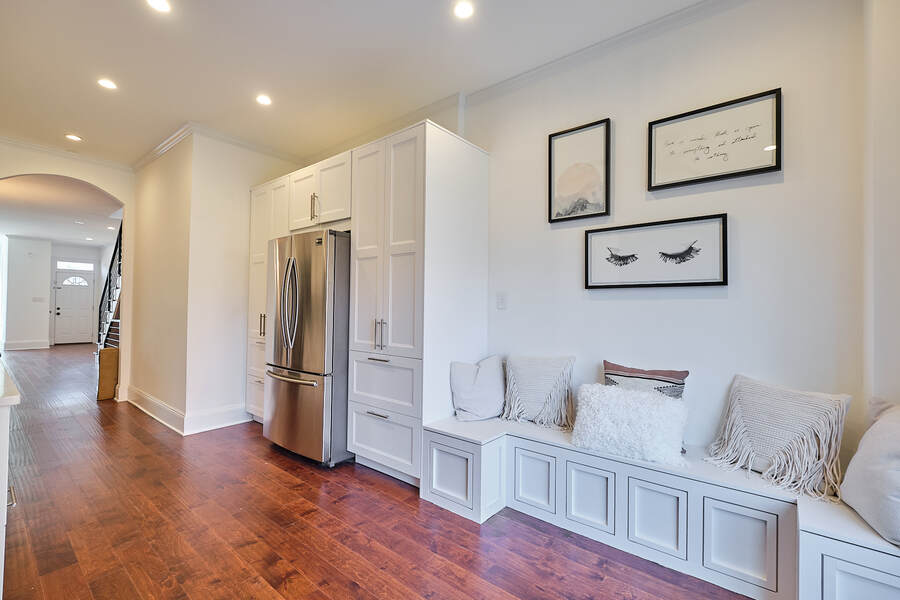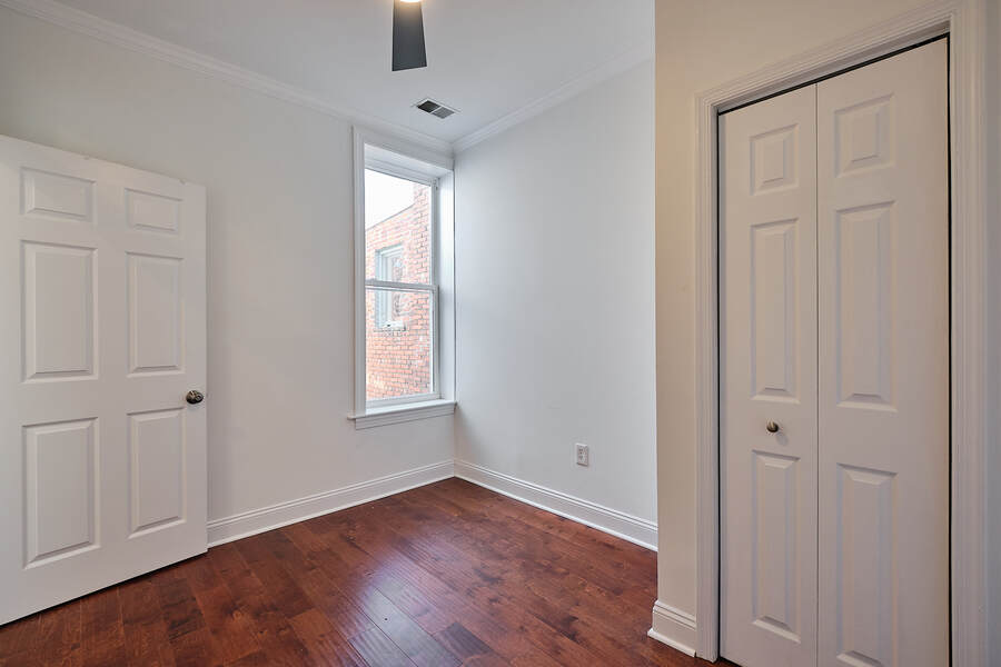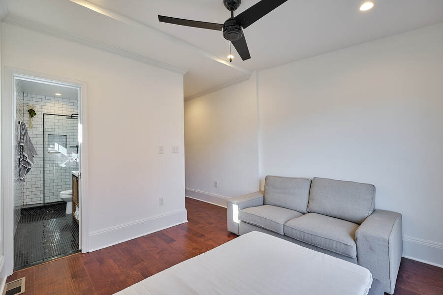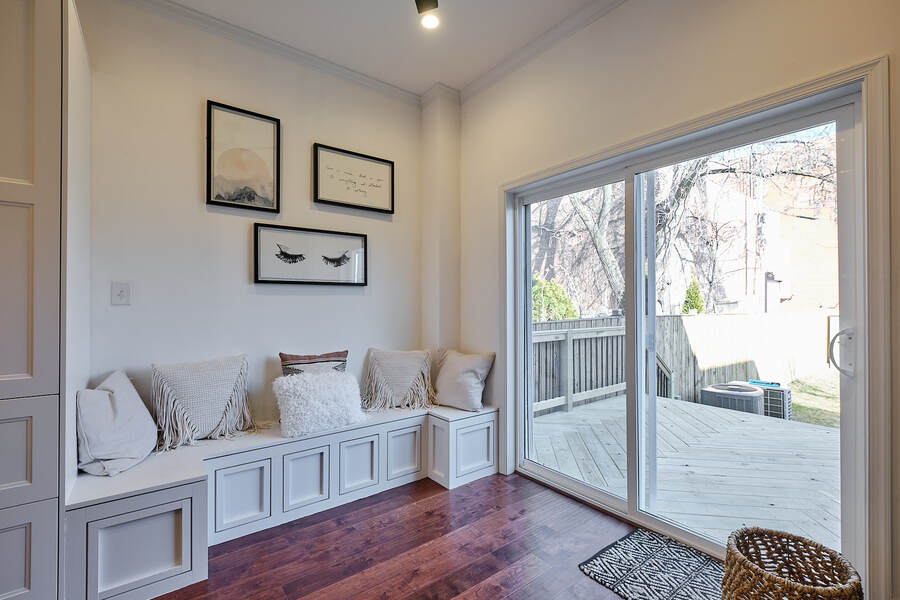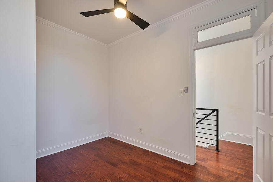 Entering this gorgeous four bedroom home you are greeted by a grand living and dining room that features beautiful hardwood floors, a decorative fireplace, large windows, a brick accent wall, and recessed lighting. Your guests will be impressed just walking through the front door! Continue through the first floor to find a half bathroom followed by your enormous chef's kitchen with high end stainless steel appliances, clean-cut white cabinets and countertops, custom backsplash, a built-in bench for seating, and a charming accent wall. Head outside to your very own deck and backyard, perfect for playing with your fury friend, hosting a barbecue, or having a romantic dinner during the summer. Your top floor showcases a total of three bedrooms and three full bathrooms. The master bedroom features tons of natural, great closet space, and a spectacular master bathroom with a beautiful vanity, modern lighting, and a subway tile shower. Head down the hall to find another modernized and fully renovated guest bathroom, a separate bedroom, and one more large bedroom which has a private bathroom with a double vanity and a Juliet balcony. Your brand new basement is the perfect place to setup a game room or convert into a family room. On this level you will find another generously sized bedroom and bathroom. There are private entrances from both the front and back yard. This home includes an in-unit washer and dryer, central air, smart home setup, and additional eco-friendly features.
