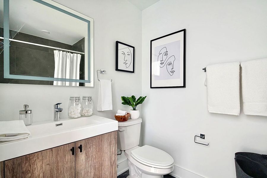 Don't miss the chance to live in this high-end apartment building with a prime location in the heart of Fishtown! Situated within walking distance from great attractions like La Colombe Coffee Roasters, Wm. Mulherin's Sons, Laser Wolf, and Jinxed Antique Furniture store, and more, you are sure to love your neighborhood. This 1 bedroom, 1 bathroom unit boasts large windows flooding the space with natural light, central air, an in-unit washer/dryer, hardwood flooring and modern finishes throughout. The kitchen features pristine white cabinets and white tile backsplash, quartz countertops, as well as stainless steel appliances. The bedroom includes an elevated glass window allowing diffused natural light and a spacious closet for storage. The bathroom has a sleek vanity, natural wood cabinetry and a full shower/tub with black contrasting tile. Last but not least, head up to the shared roof deck to take in beautiful city views.