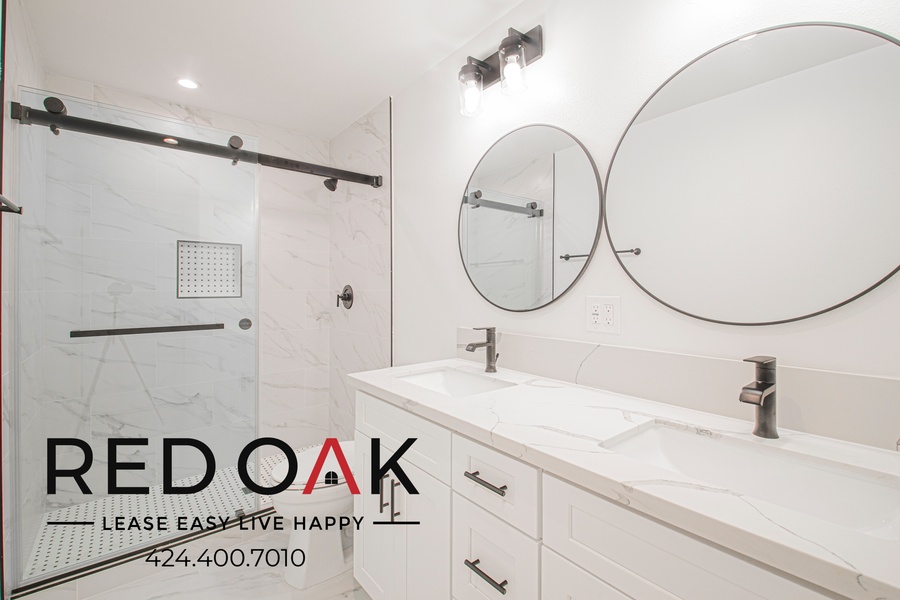 ~ Bathrooms: Two full bathrooms with a walk-in shower and soaking tub/shower.