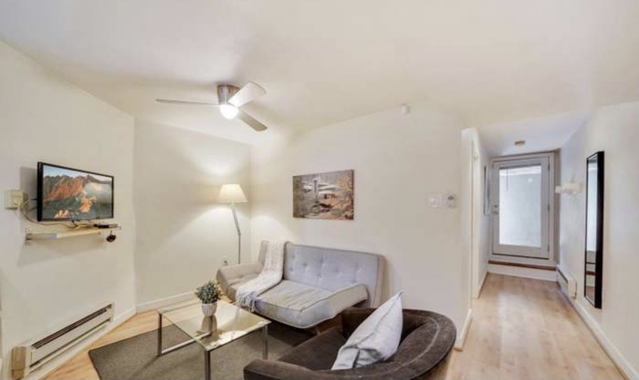 Get comfortable in this bright and well-designed basement residence featuring an open living layout with high ceilings and modern finishes. The kitchen offers stainless steel appliances, generous cabinetry, and a breakfast bar that flows naturally into the living area. The bedroom provides a cozy retreat with good closet space, and the bathroom includes updated fixtures and clean, contemporary style. An in-unit washer and dryer and central air conditioning add everyday convenience, while access to the backyard/patio creates a pleasant outdoor option. Bike storage is also available for added flexibility.