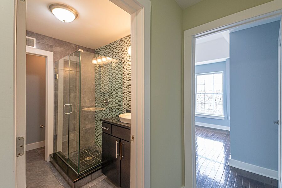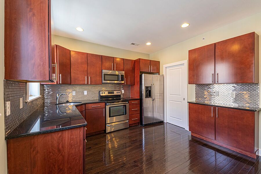 Luxury bi-level, 2 bedroom, 1.5 bathroom apartment. The gorgeous interior features amenities including: central air, designer lighting, new washer/dryer, and hardwood floors. The property consists of a spacious, open living room with an adjacent powder room. A super modern gourmet kitchen furnished with stainless-steel appliances that include a dishwasher, refrigerator and microwave, in addition to sleek granite counter-tops and elegant designer cabinetry. An amazing glass and stainless steel banister along the stairs leads to the second level, which features 2 beautifully painted spacious bedrooms with abundant closet space in both, a beautiful full bathroom with a modern stand up glass shower and truly exquisite tile.