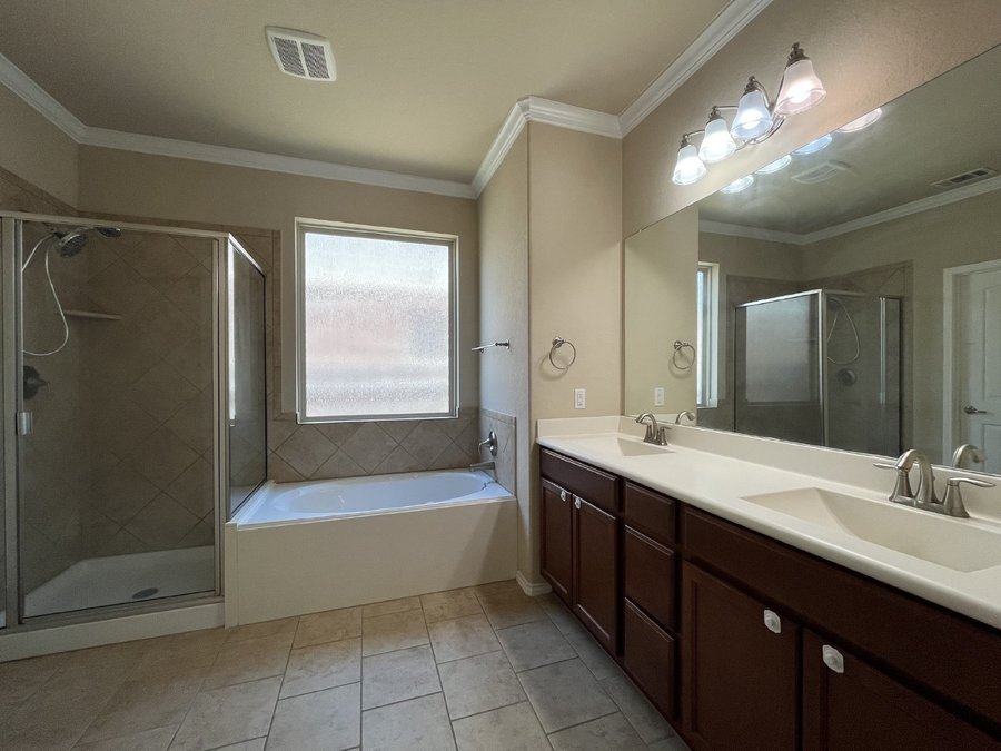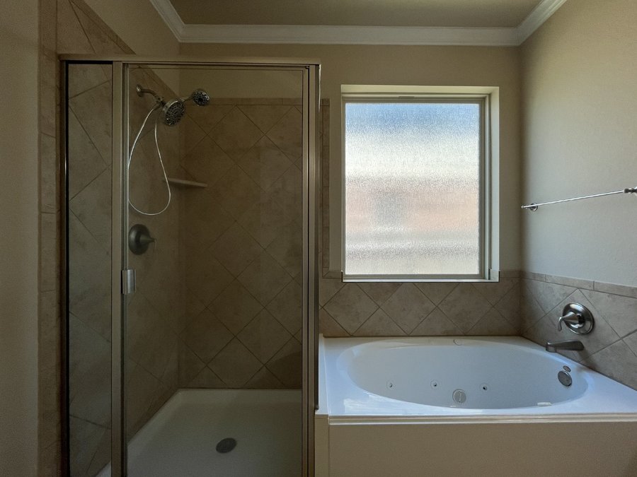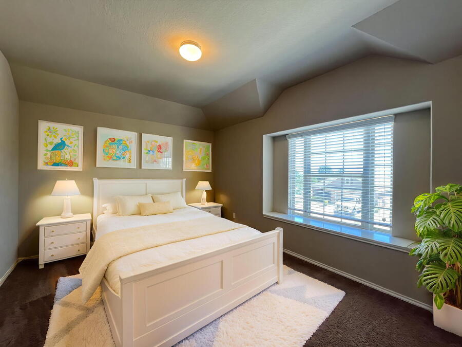 The primary suite features a walk-in closet and a private bath with a double vanity, walk-in shower and a garden tub with whirlpool jets. Additional features include washer and dryer hookups in a dedicated laundry room, an alarm system, energy-efficient windows, low-flow commodes, a water softener and central HVAC with a programmable thermostat. The attached two-car garage includes an automatic door opener for added convenience.